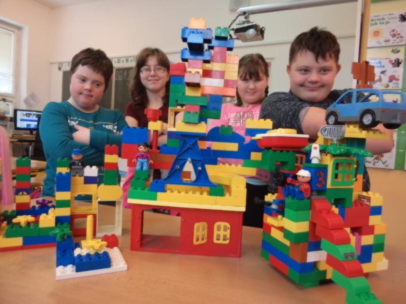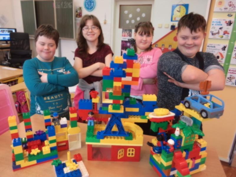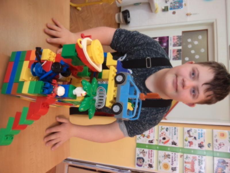 Tématem našich prací je ZIMA - jak se oblékáme, co všechno v zimě děláme? Překreslili jsme sami sebe, vyrobili jsme si lyžaře... Ale zároveň jsme pokračovali v tématu NAŠE MĚSTO - z pohledu osobité fantazie a ztvárnění funkčnosti budov v našem městě z kostek z oblíbené stavebnice LEGO.