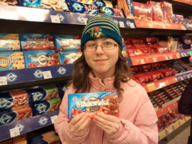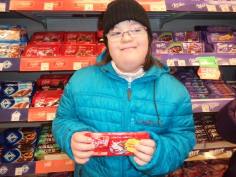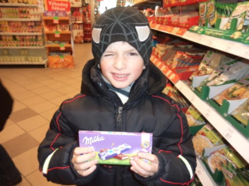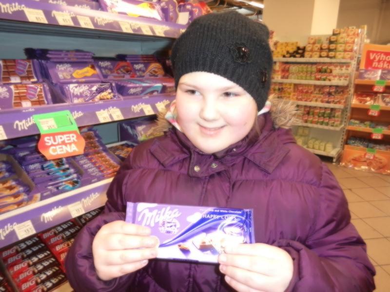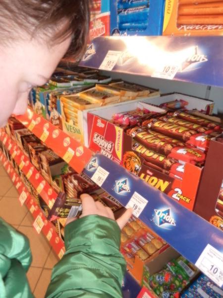 Vydali jsme se do města, kde jsme navštívili běžnou prodejnu - vyhledali jsme si čokoládky..."Kerou máme nejraději?", Kolik stojí čokoláda?", "Které firmy vyrábí čokoládu?".