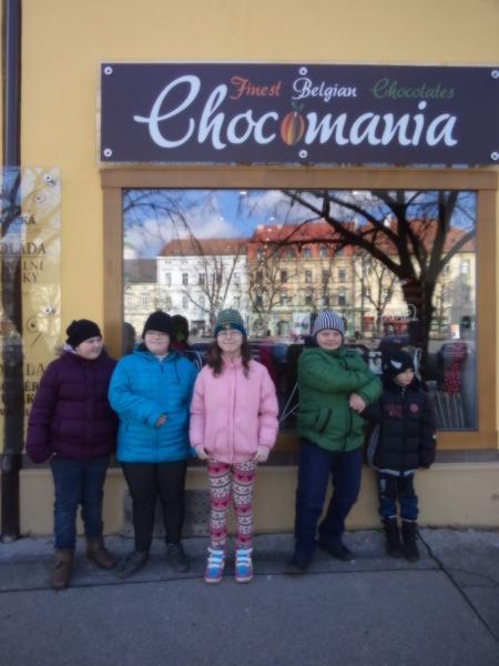 Potom jsme pokračovali do specializované prodejny, kde jsme viděli velkou spoustu krásných čokoládových bonbonů... Vybrali jsme si "smajlíkové", které jsme ve škole ochutnali. Také máme jeden schovaný pro naši nemocnou spolužačku, které přejeme brzké uzdravení!