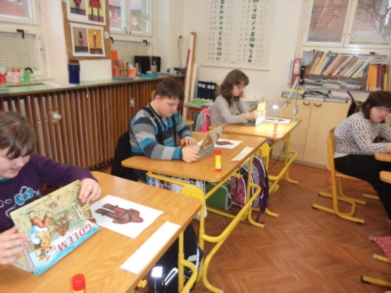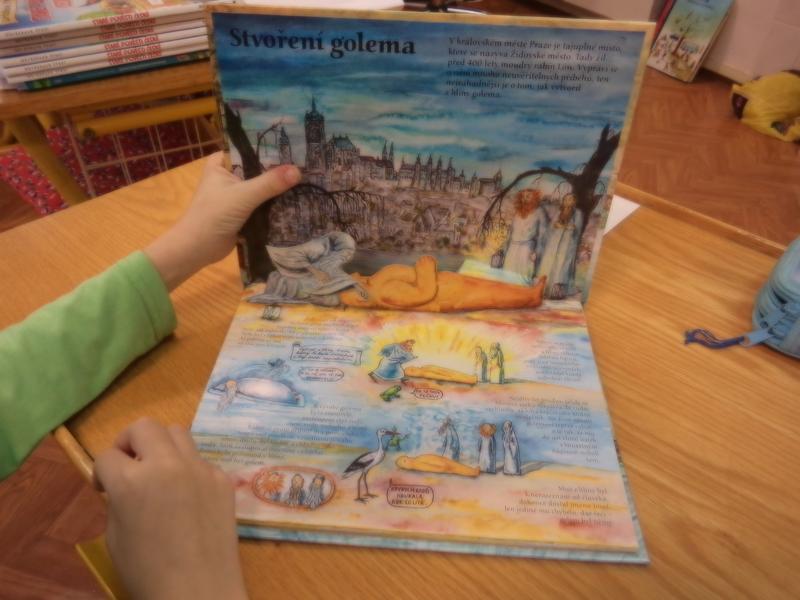 Ve čtenářské dílně jsme se zabývali příběhem "O GOLEMOVI" - pracovali jsme s knížkami, skládali jsme obrázek, lepili a modelovali jsme z keramické hlíny...