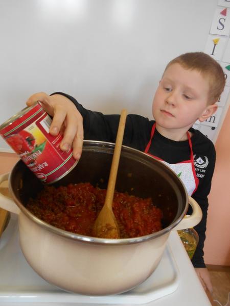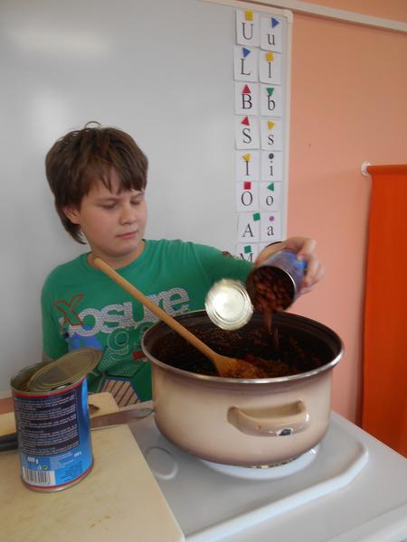Připravovali jsme se na zítřejší projektový den a v našem pravidelném úterním vaření dnes kuchtili chilli con carne se čokoládou.