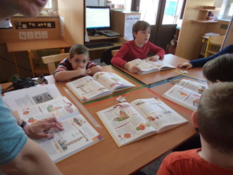 Práce s knihou a encyklopedií - seznamování se s novými informacemi, tentokrát to bylo vyhledávání informací na téma "Jaro a Velikonoce".
