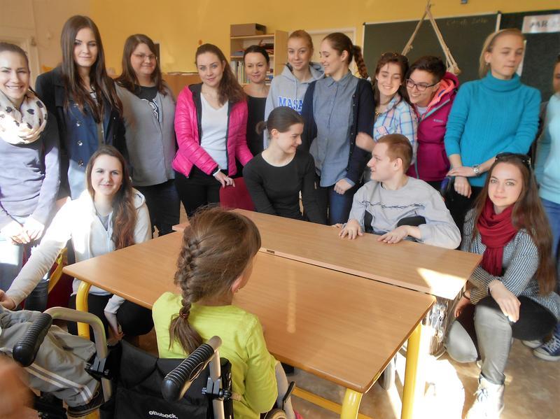 V pátek jsme přivítali na exkurzi naší školy studenty 4. ročníku SŠPHZ z Uherského Hradiště. Studenti se nejdříve dozvěděli něco o naší škole a žácích a pak měli možnost navštívit jednotlivé třídy. Zde viděli jak probíhá výuka v jednotlivých třídách. Zajímali se také o speciální pomůcky, vybavení tříd a snoezelen.