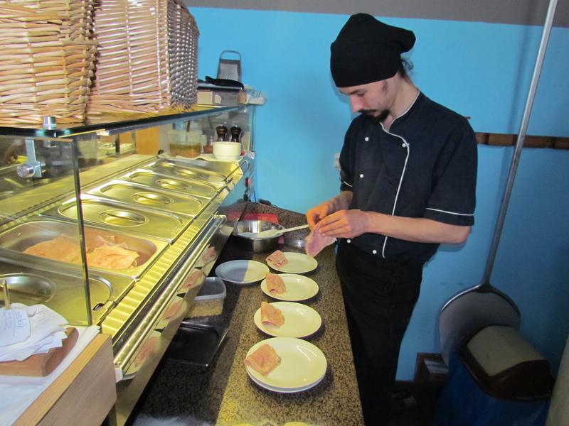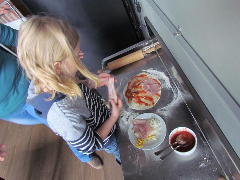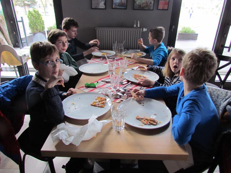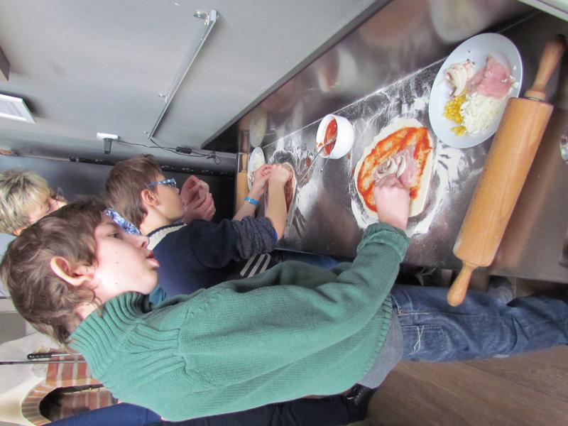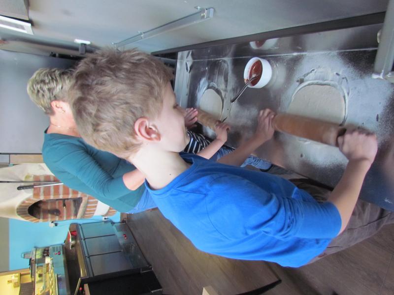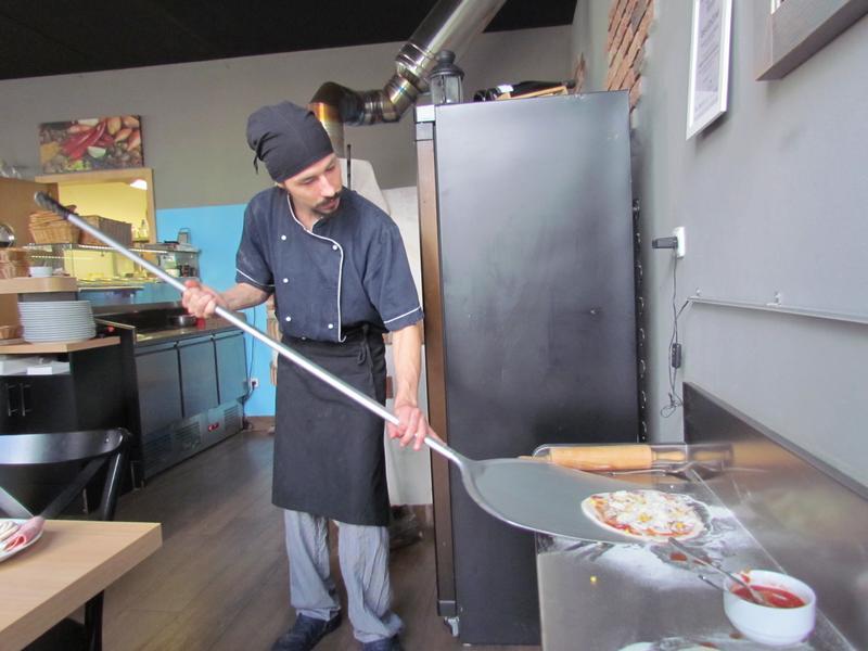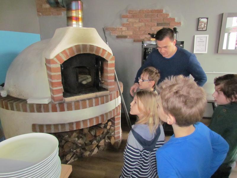 Poučeni jsme se potom vydali do samotné restaurace, kde se nám věnoval kuchař i pizzař. Viděli jsme roztopenou pec na pizzu a sami si vyzkoušeli, jak se pizza vyrábí. O tom, že byla vynikají, svědčí prázdné talíře.