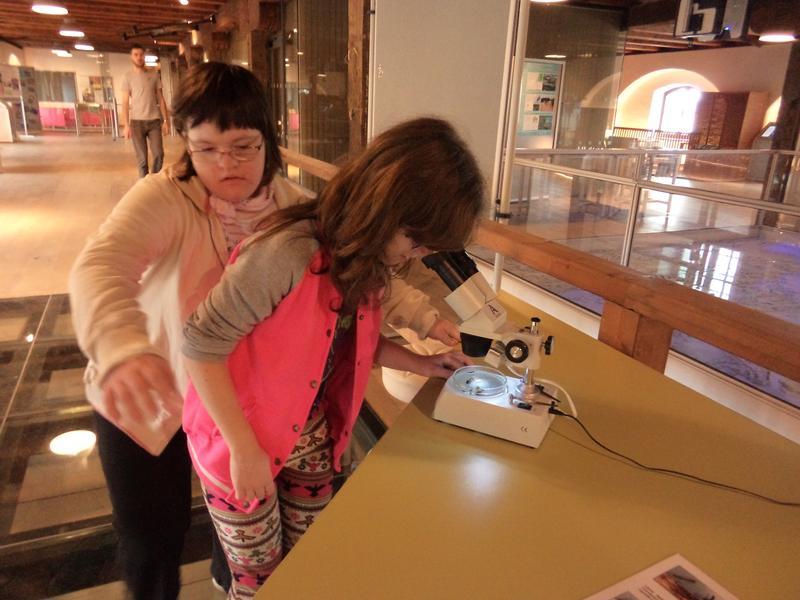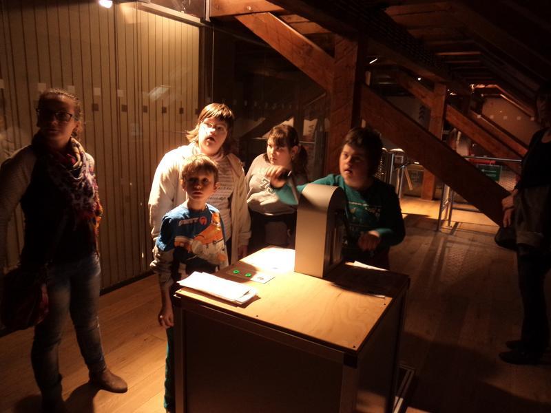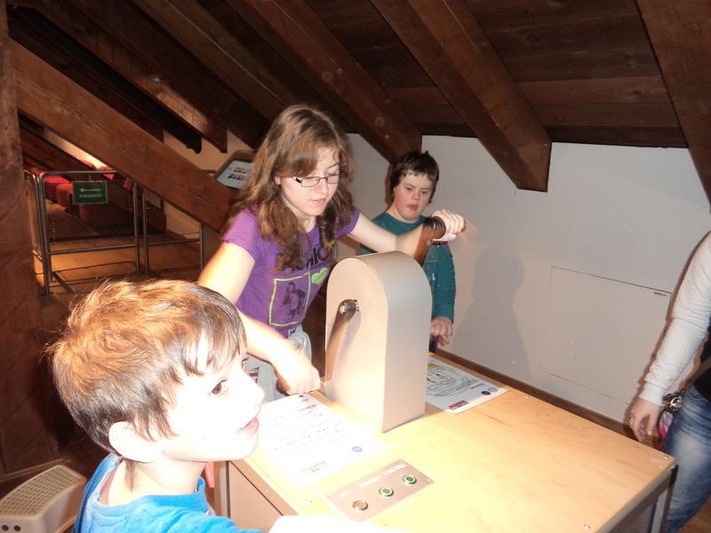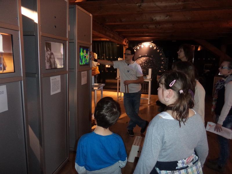 Úspěšně jsme prošli turnikety a přesunuli jsme se o poschodí výš a zde nás čekala expozice s názvem "Živá voda". Bylo to o naší řece Moravě od pramene. Prošli jsme se i řečištěm řeky, podívali jsme se na různé živočichy pod mikroskopem, pohráli jsme si a v dalším patře navštívili expozici "Světlo a tma", kde jsme vyráběli elektrický proud a viděli sposty zajímavostí.
