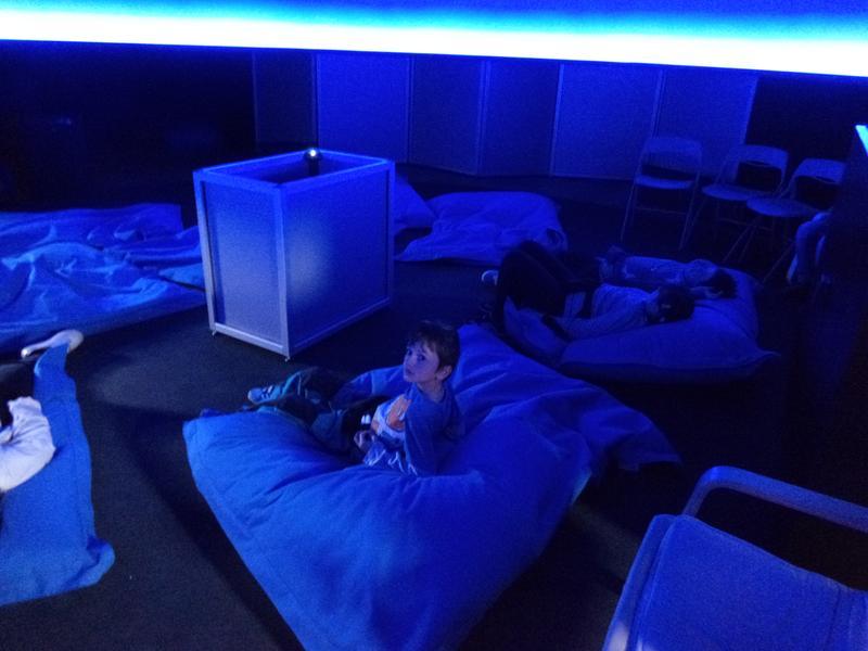 Závěr naší návštěvy byl v "Planetáriu". 12. 4. je také datum, kdy první člověk vzlétl do Vesmíru. My jsme shlédli film O Měsíci a také jsme si trošku odpočinuli.