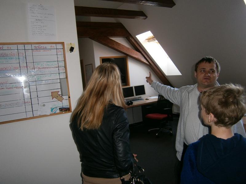 Na exkurzi do televizního studia regionální televize MIK Slovácko jsme se vydali na Panský dvůr do Kunovic. Pan kameraman Hanáček nás provedl studiem pro moderování zpráv a ukázal nám taje televizního vysílání, o kterých jsme neměli ani tušení.