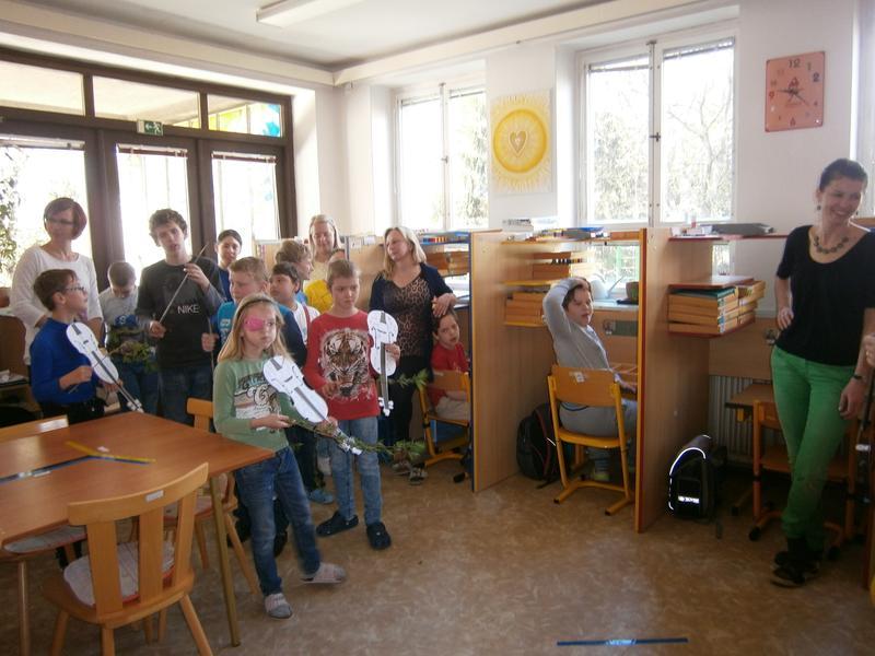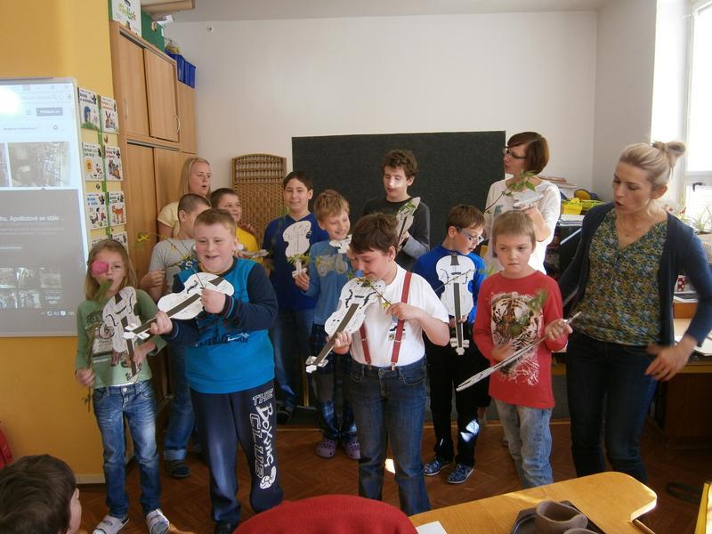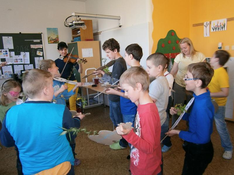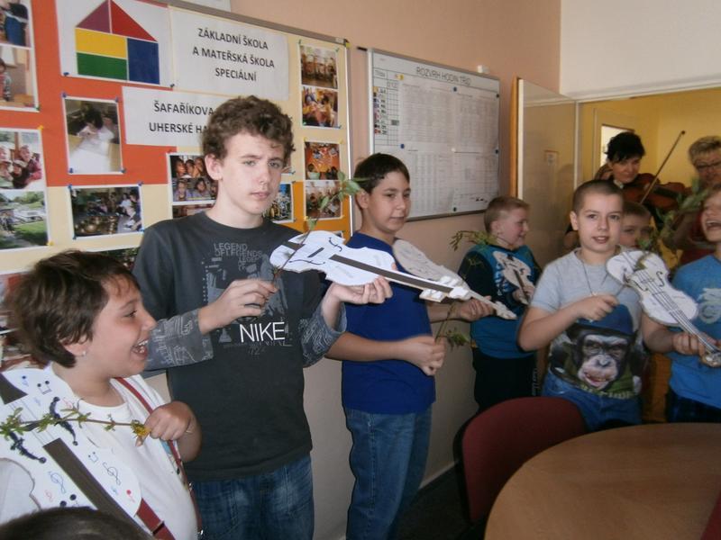 Hudci z Kyjova navštívili všechny regiony naší školy. Pod vedením primáše zvládli na housle zahrát a zazpívat písničku pocházející z Kyjova. Dříve hudci nejen obcházeli vsi a dědiny s pěknou písničkou, ale také přenášeli informace, takzvané drby :-)