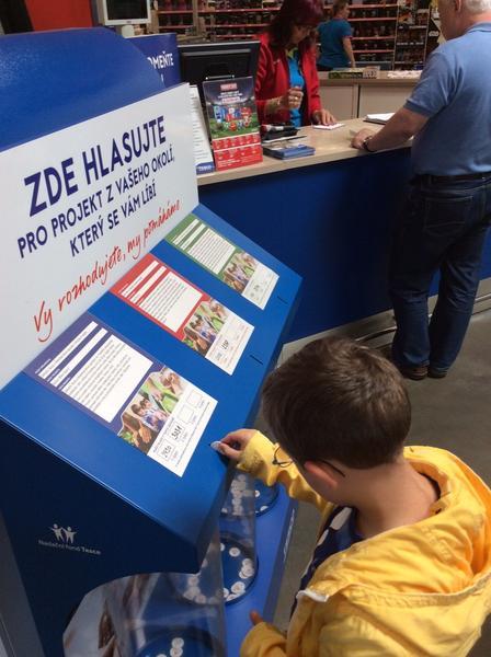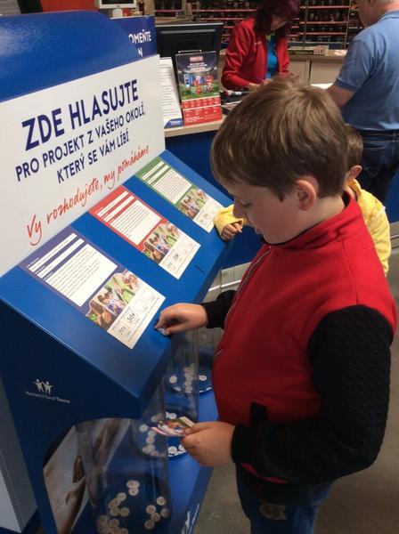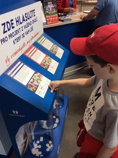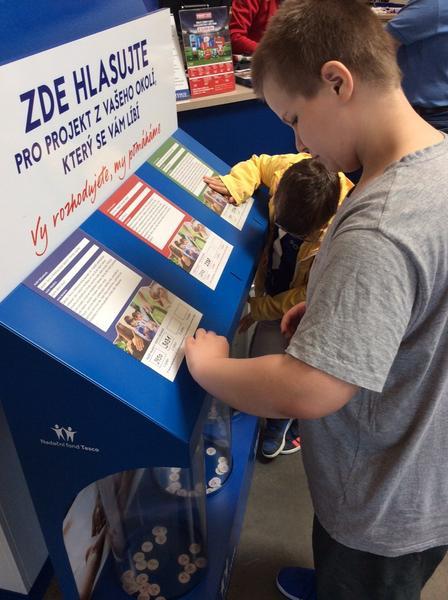 Při pravidelném nákupu na vaření v hypermarketu Tesco jsme u pokladny obdrželi několik žetonů. Pomocí těchto žetonů jsme potom hlasovali u vstupu do hypermarketu. Dostalo se na každého žáka a všichni svým hlasem podpořili projekt naší školy.