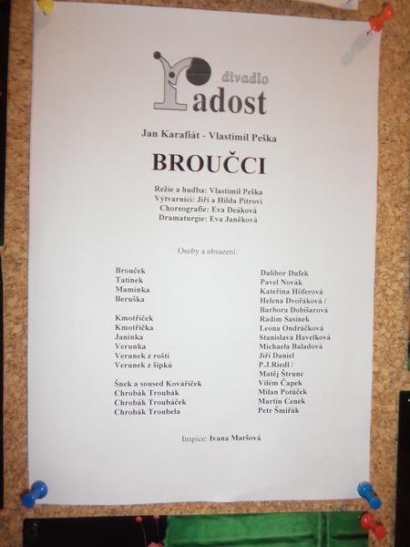 Skupina žáků z naší školy se vydala do Brna na divadelní představení "BROUČCI". Naše expedice cestovala vlakem vyšší třídy a tramvají.