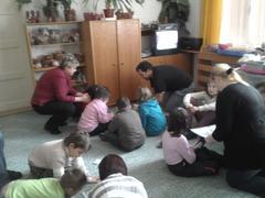 Protože nás bylo hodně, rozdělili jsme se na dvě skupiny a v průběhu nám vymezeného času vystřídali dvě stanoviště. Na jednom stanovišti jsme pracovali s interaktivním programem na PC a na druhém stanovišti jsme se podívali na naučný pořad na DVD a vyzkoušeli si namalovat co nejbezpečnější cestu do daného cíle.