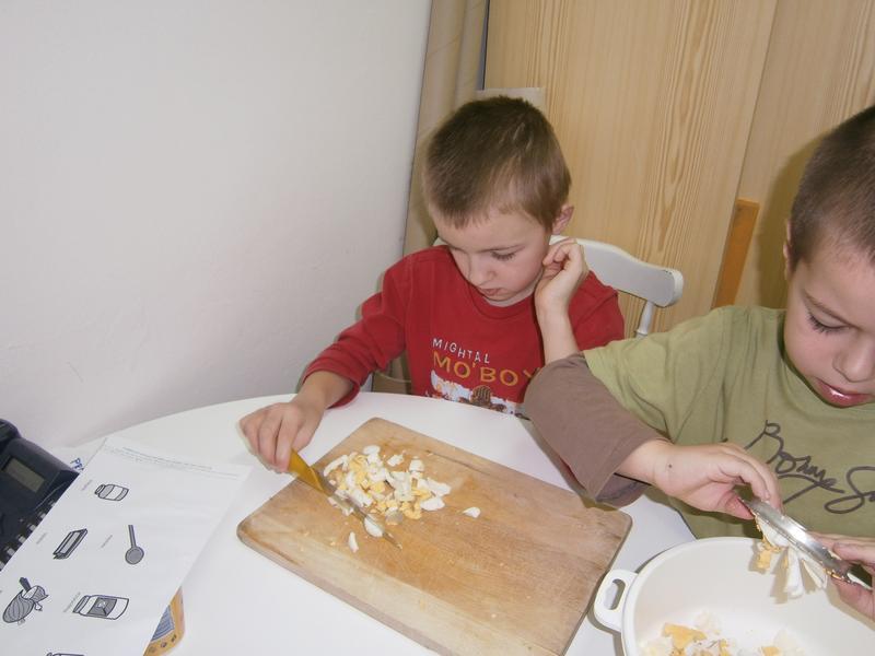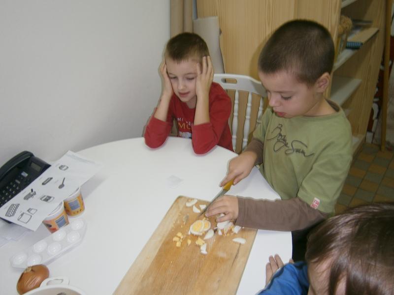 Moc dobrou svačinku si připravili dnes žáci páté třídy. Pracovali s nadšením a hlad je popoháněl. Úsilí se vyplatilo. Byla moc dobrá a všechno snědli.