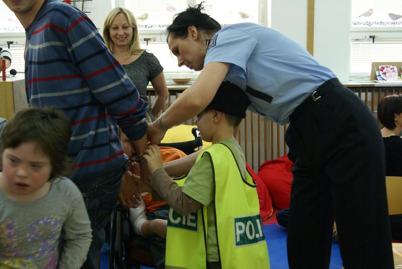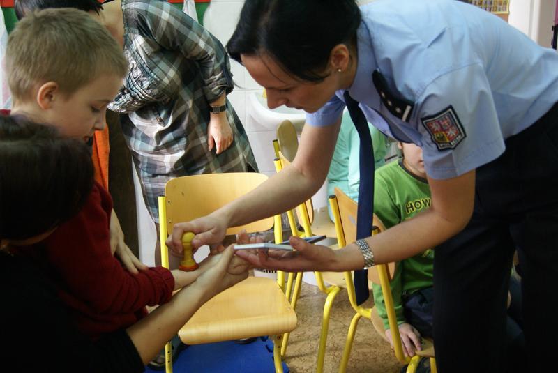 Někteří z nás si vyzkoušeli pouta a jako důkaz dnešní besedy šli domů označkovaní policejním razítkem.