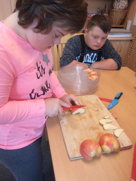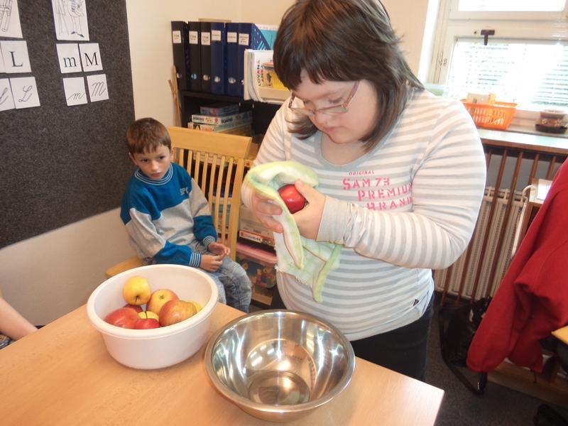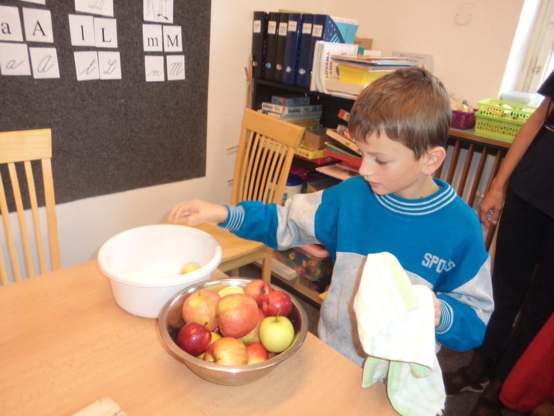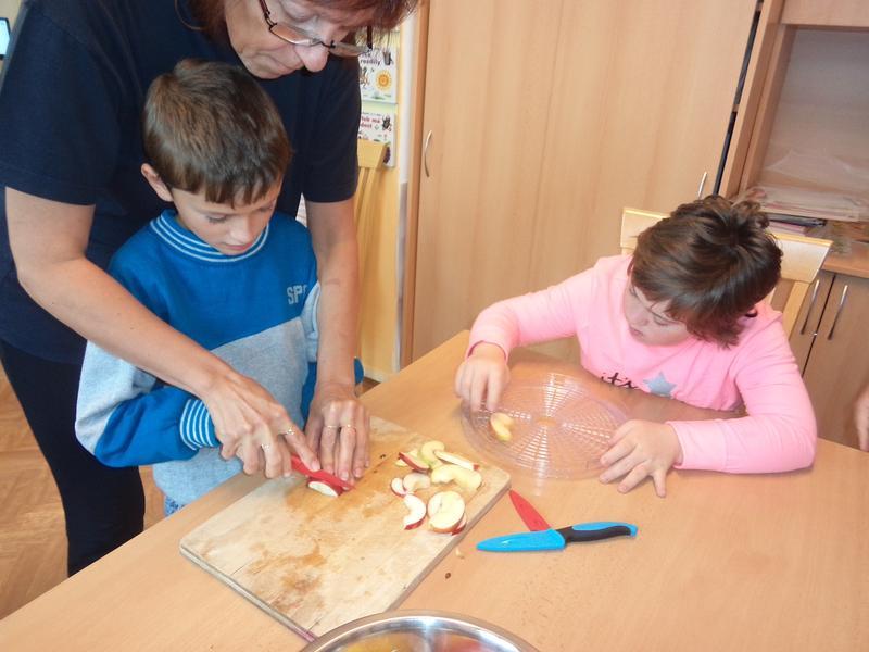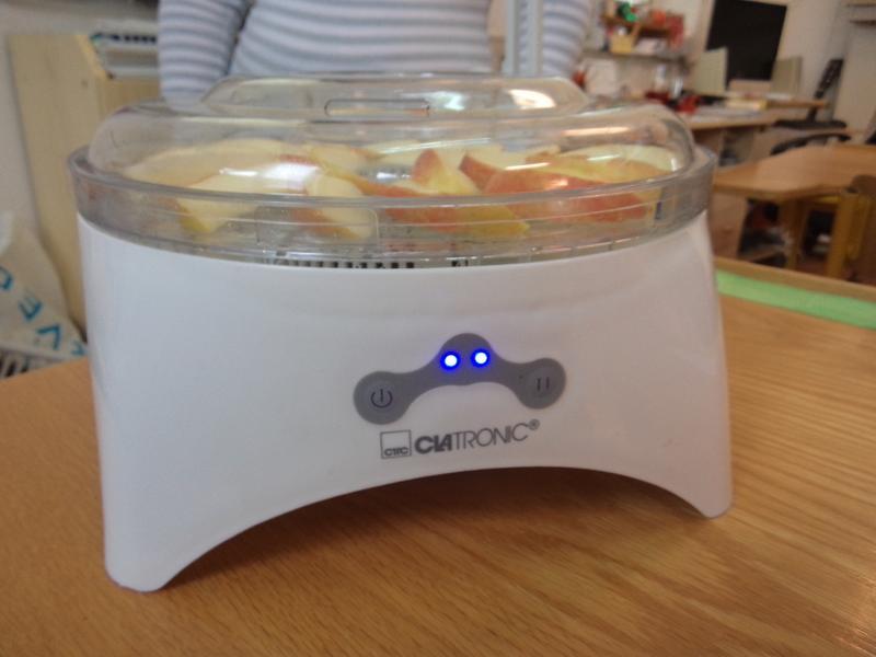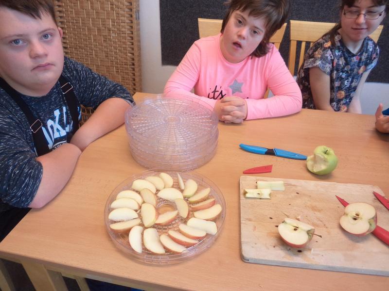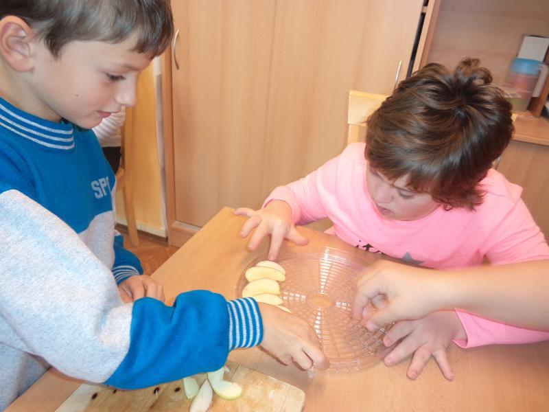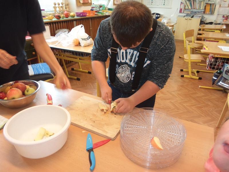 Přinesli jsme si jablka, které jsme nejdříve umyli, osušili, nakrájeli a vložili do sušičky - elektrický přístroj, který je k tomu přizpůsobený. Dodržovali jsme bezpečnostní pravidla při práci a hygienické zásady.