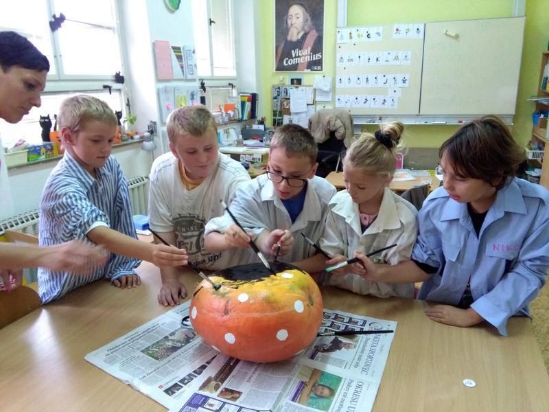 Přestože se halloweenský svátek slaví až 31. října, začali jsme se strašidelnou výzdobou třídy v předstihu.