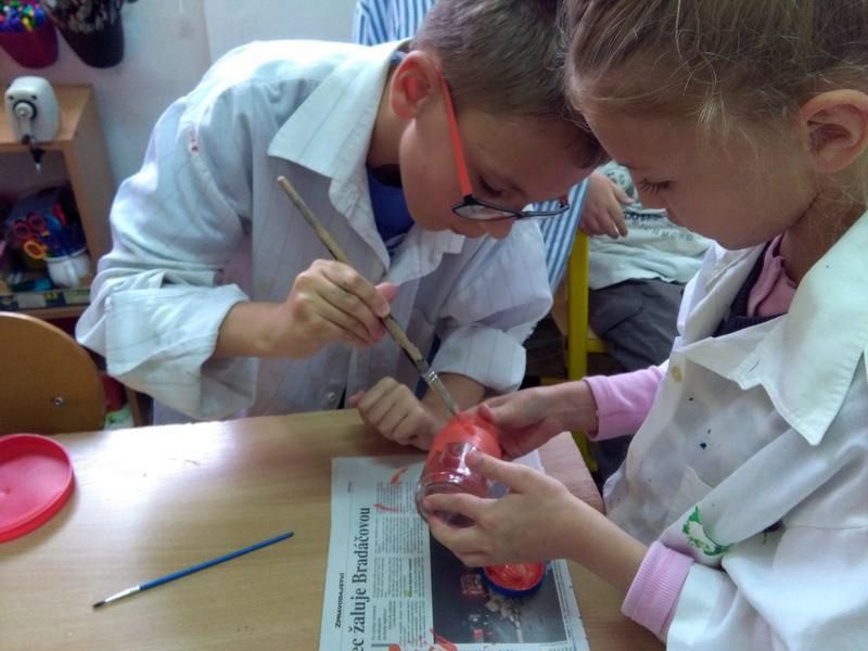 V dnešní pracovní výchově jsme malovali, lepili, stříhali, zdobili třídu a plánovali kostýmy, které si v tento den oblečeme.