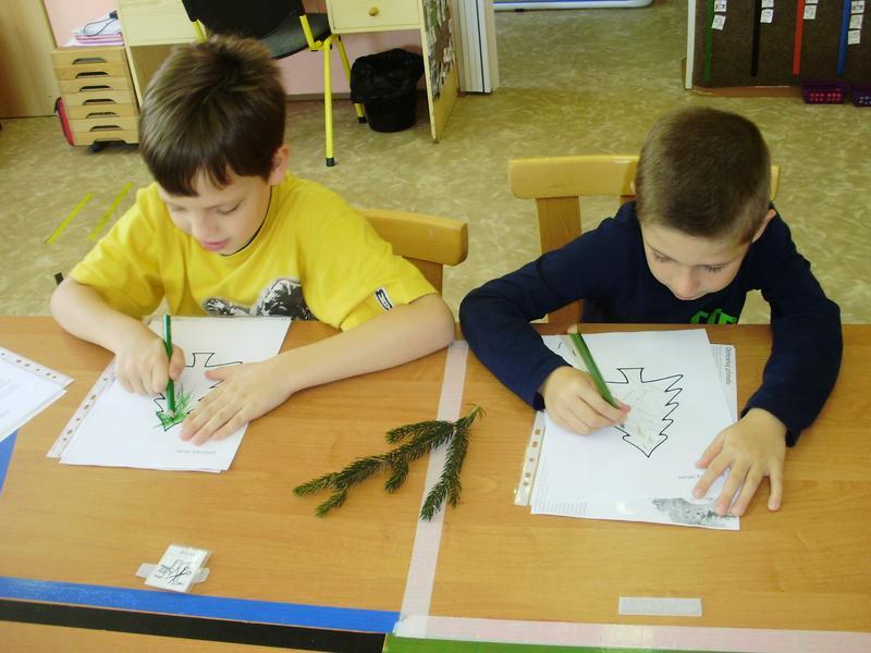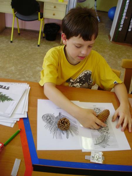 Na úvod jsme si řekli základní informace o stromech, prohlédli si jak který vypadá a hledali rozdíly. Přiřazovali jsme listy a šišky, počítali letokruhy. V rámci projektu Čtení, to nic není jsme si v různých chytrých knihách vyhledali zajímavosti a zaměřili se na život v lese. Shlédli jsme i některá videa ze živta v lese. Už víme, jak se máme v lese chovat a protože to není jen tak, potkat lesní zvířátko, podívali jsme se alespoň na některá lesní zvířátka vycpaná. Někomu se líbila, někdo by je raději viděl pobíhat.