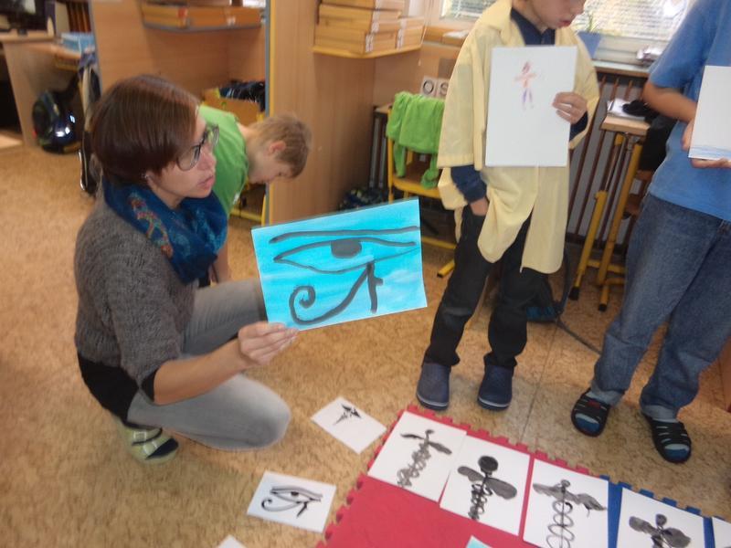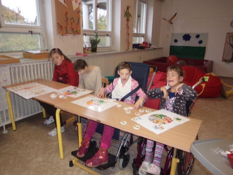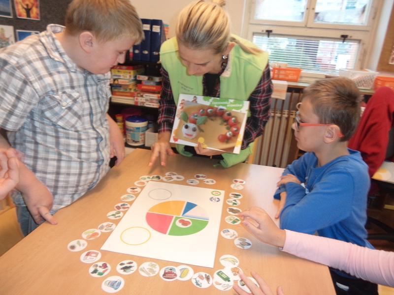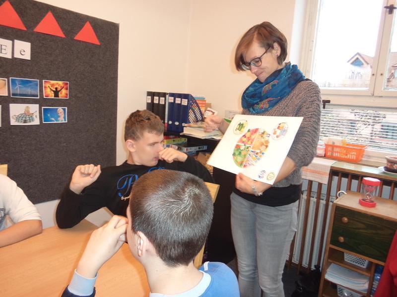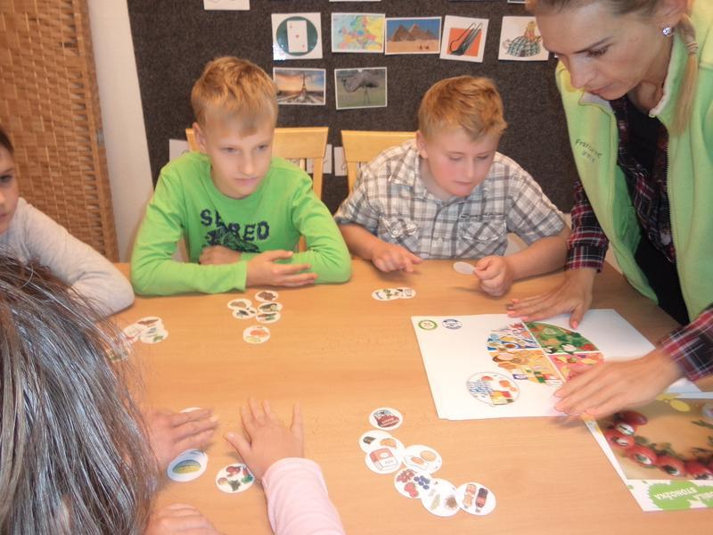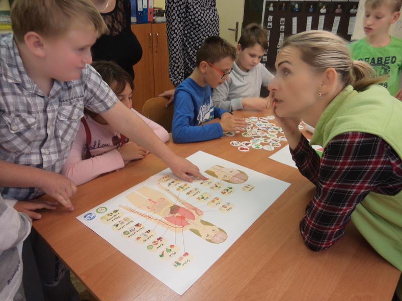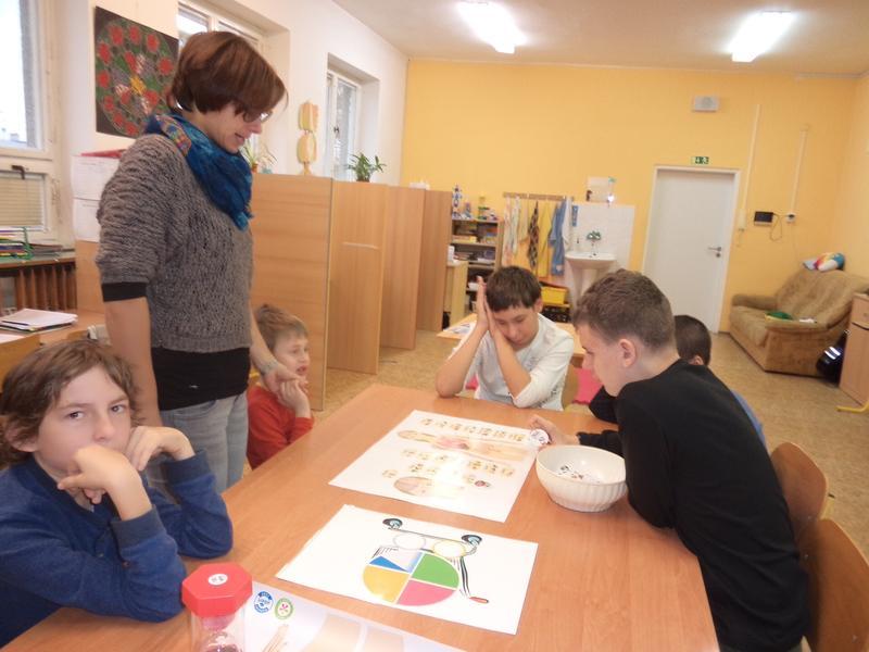 Další činností bylo plněnní úkolů - využili jsme pomůcky z programu "Zdravá pětka" - zdravý výživový talíř, výživová pyramida a lidské tělo.