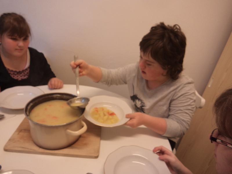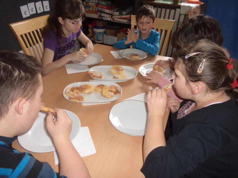 V rámci měsíčního tématu ve II. třídě jsme splnili spousty úkolů. Učíme se o zdraví a zdravé výživě, pracueme s knihami o vaření, učíme se hledat recepty na internetu, nakupovali jsme, učili jsme se o správném stolování, vařili jsme zelnou polévku a také jsme si připravili velmi lahodá jablka v županu...