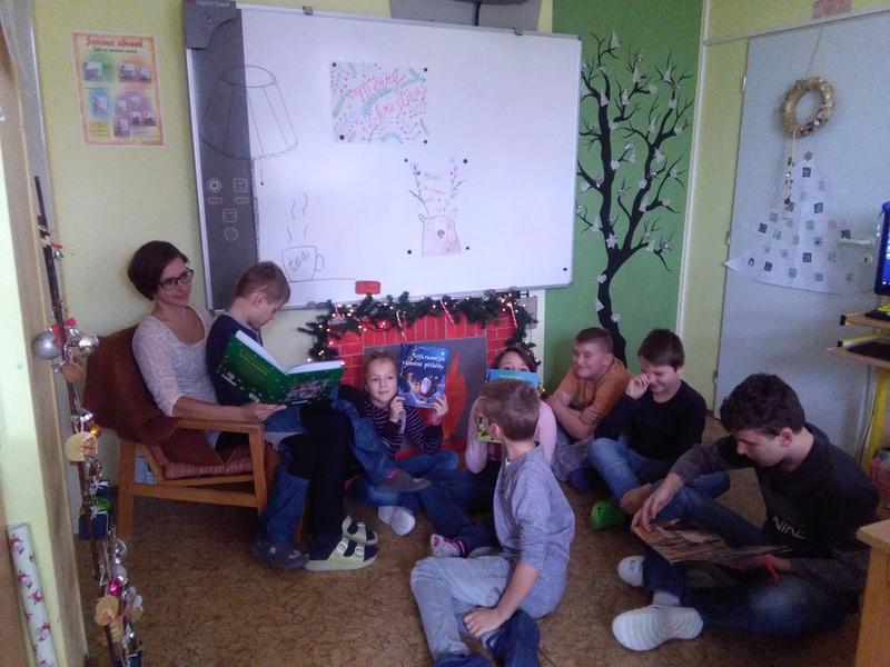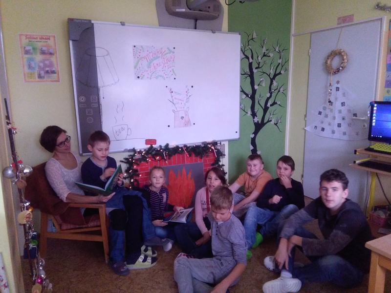 Pohodlné křeslo, hořící krb, světýlka, ozdoby a knížky ... to všechno jsme dnes vykouzlili pro naše žáky ve IV. a V. třídě pro vytvoření té pravé vánoční nálady. Inspirací je pro nás téma projektového dne Vánoce v cizích zemích, který proběhne v naší škole 22. prosince.