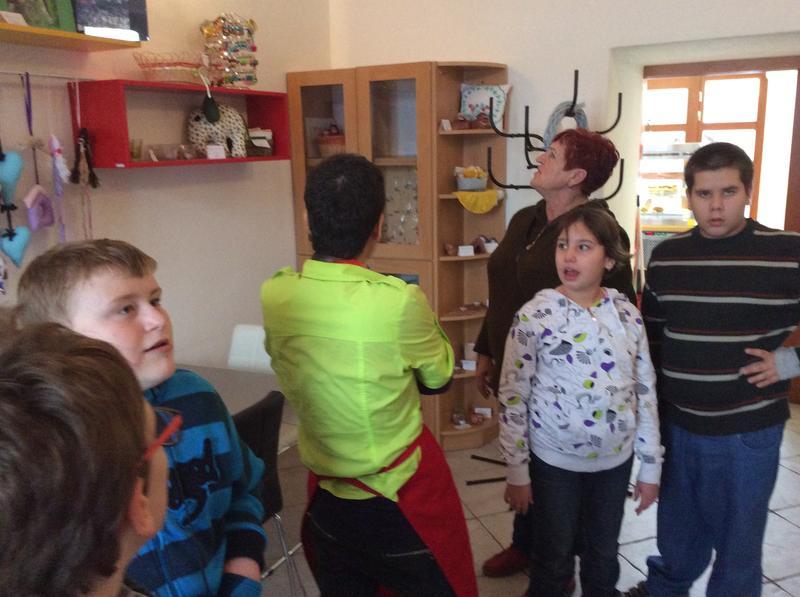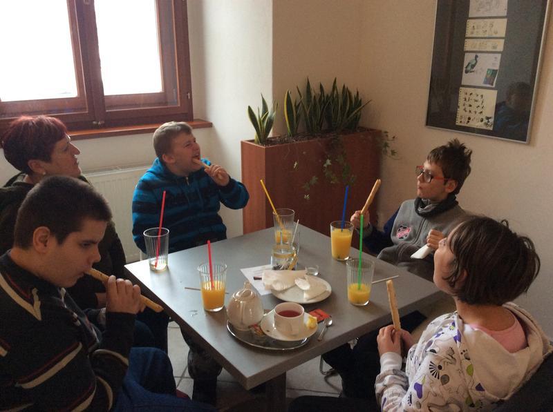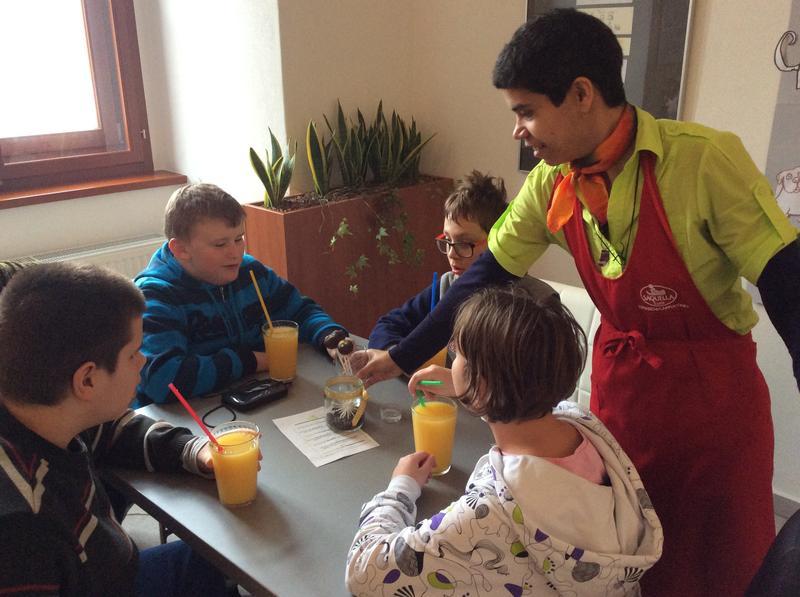 V dnešním kroužku vaření se žáci vydali na výstavu obrazů naší spolužačky Anežky Klinkovské do kavárny Café 21. Výstava trvá již od 20. ledna do 17. února, a tak byl pomalu nejvyšší čas ji navštívit. V kavárně nás obsloužila velmi sympatická servírka Evička, která se nám neustále věnovala a plnila naše objednávková přání. Všichni jsme si objednali džus a k tomu nejdříve něco dobrého sladkého a pak i slaného.