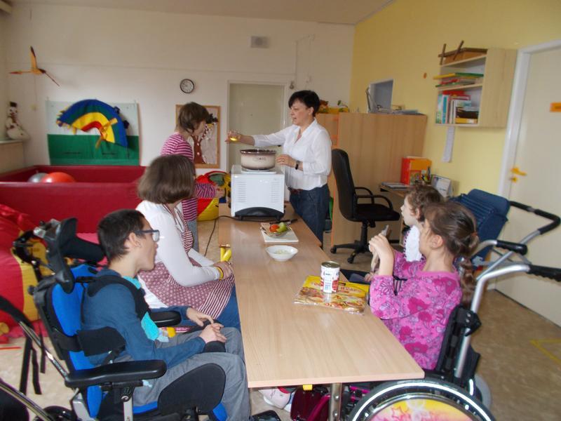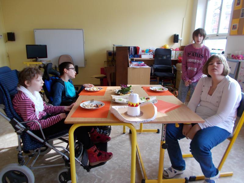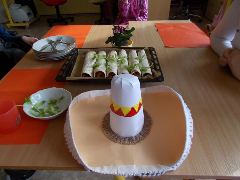 Čeká nás projektový den"Mexiko". A co mexičani vlastně jí? Děti tortilly vlastnoručně připravili a ochutnali u prostřeného stolu. A protože po jídle je dobrý i pohyb, někteří z nás se zapojili do společného žonglování. Ti co zůstali ve škole však taky nezaháleli, relaxovali ve snoezelenu s novou rehabilitační pomůckou - světelnými vlákny.