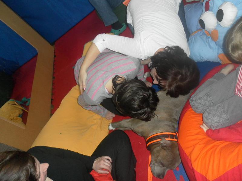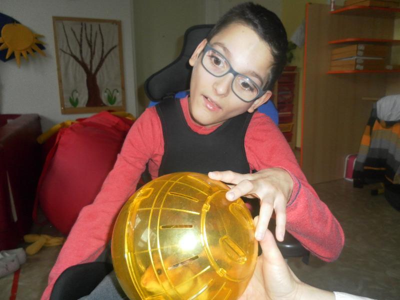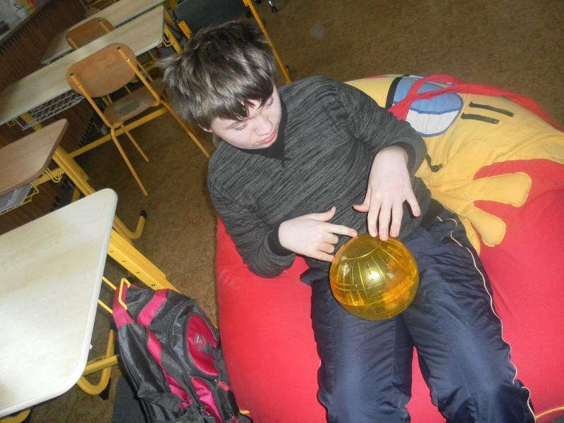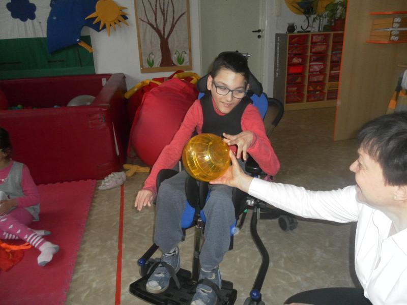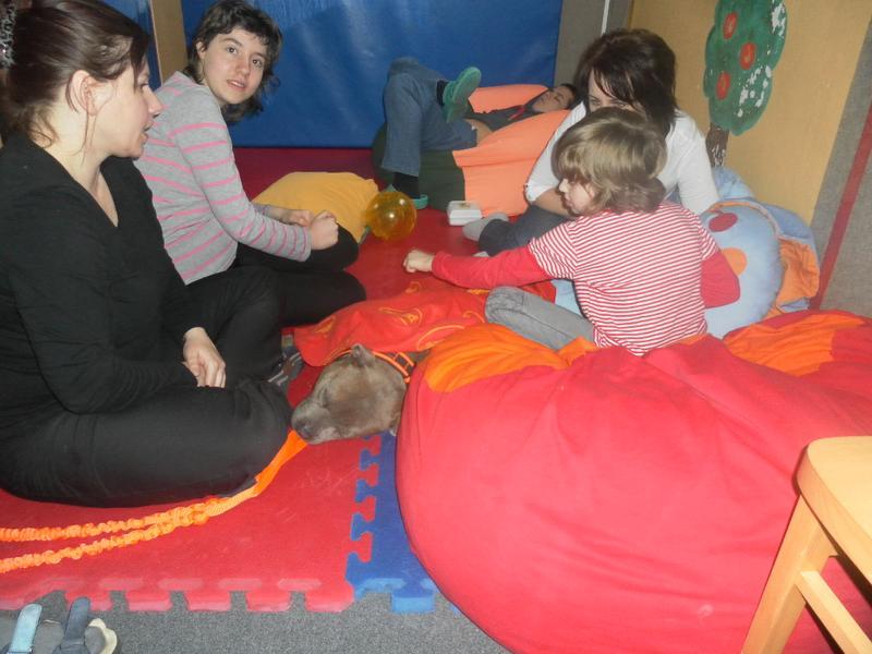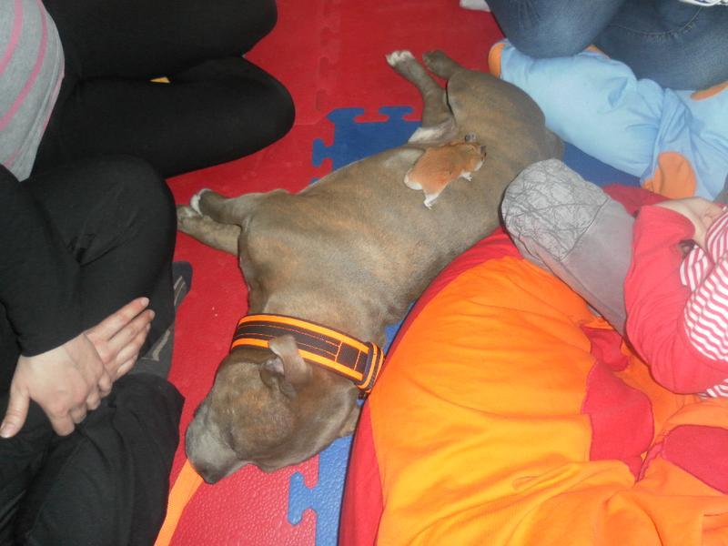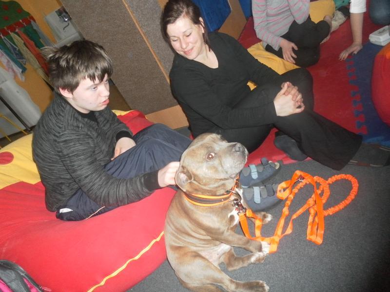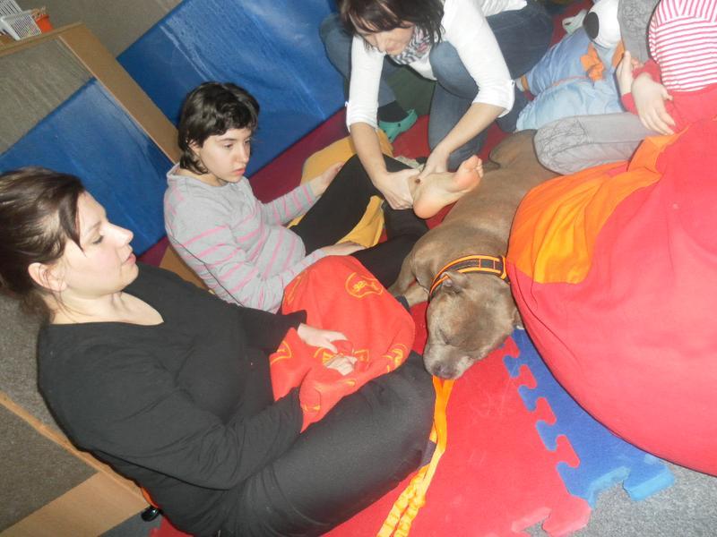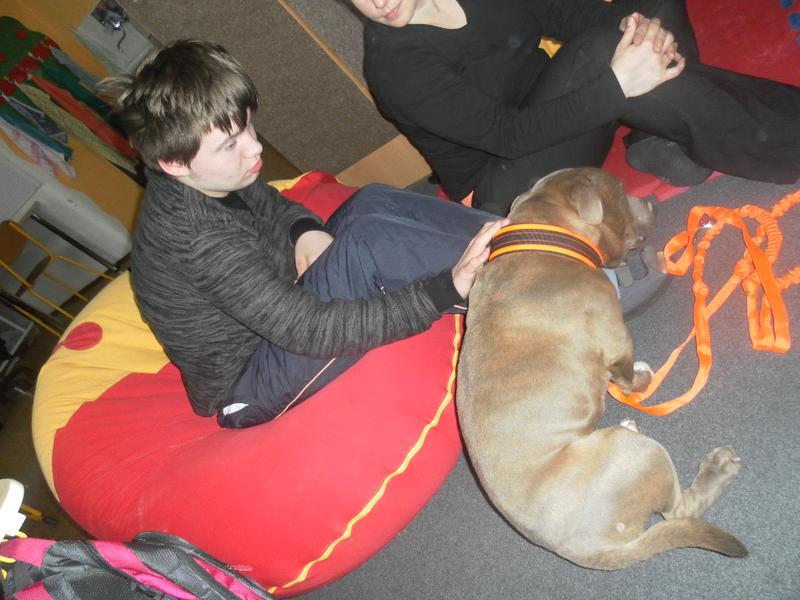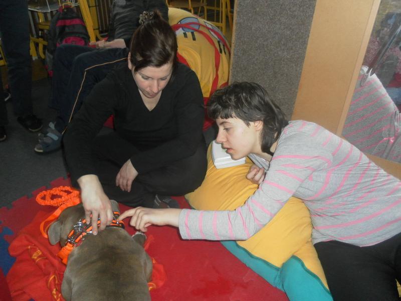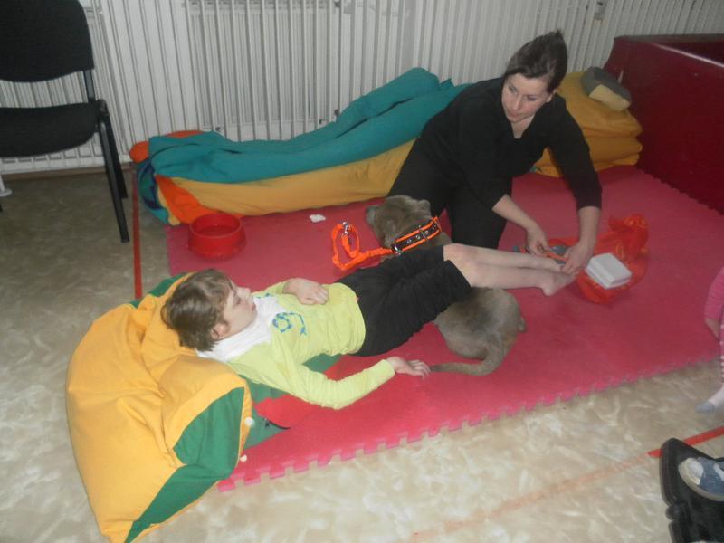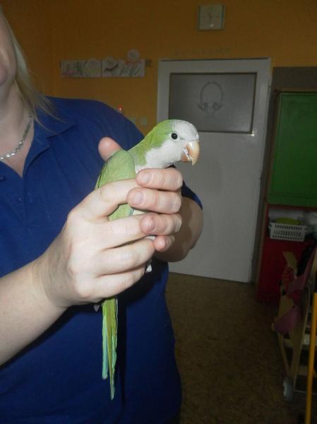 Dnes jsme poprvé vyzkoušeli novou formu terapie – terapii se zvířátky. Klasickou prožitkovou canisterapii tentokrát nahradilo polohování se psem Marlinem, přítomnost papouška - mníška šedého Polly a křečka Stewarda.