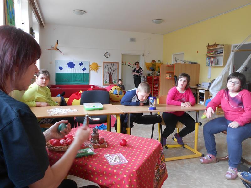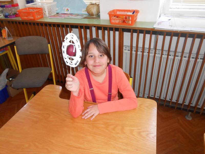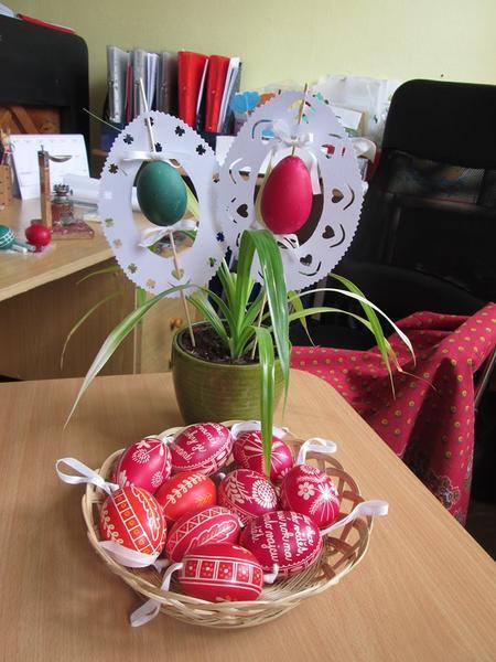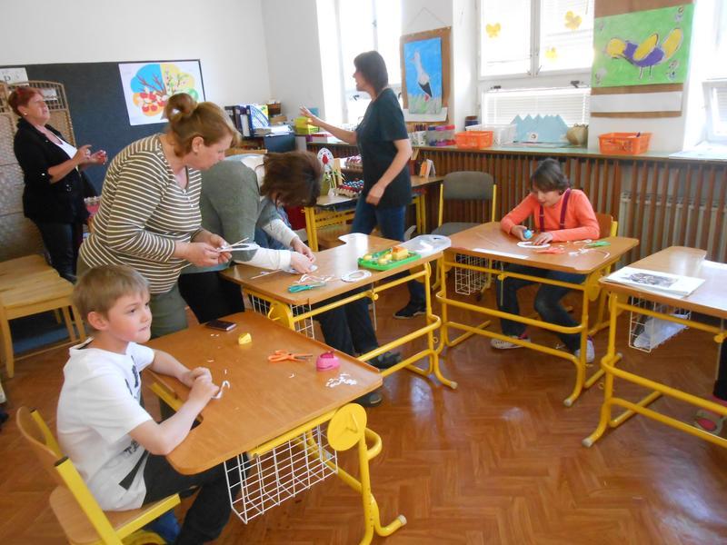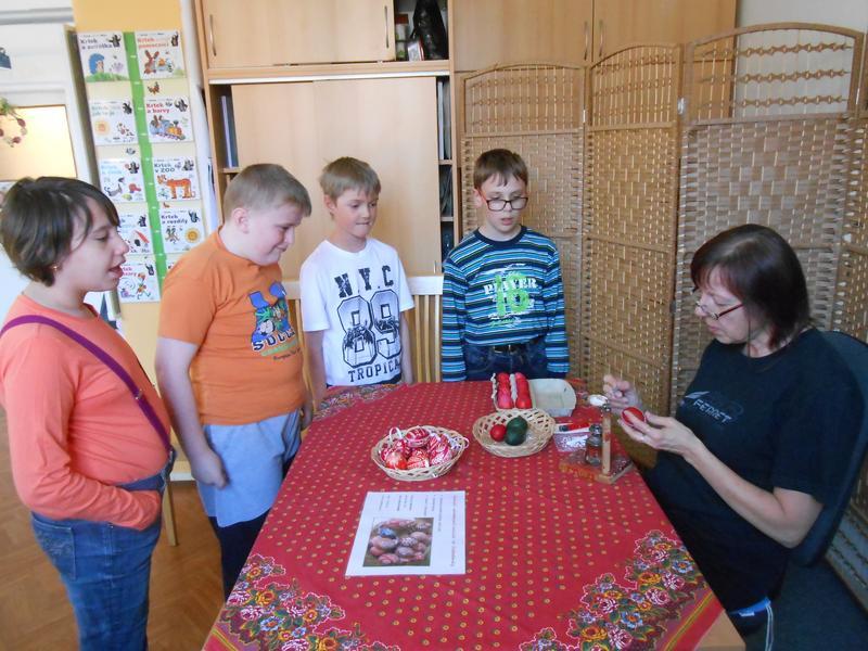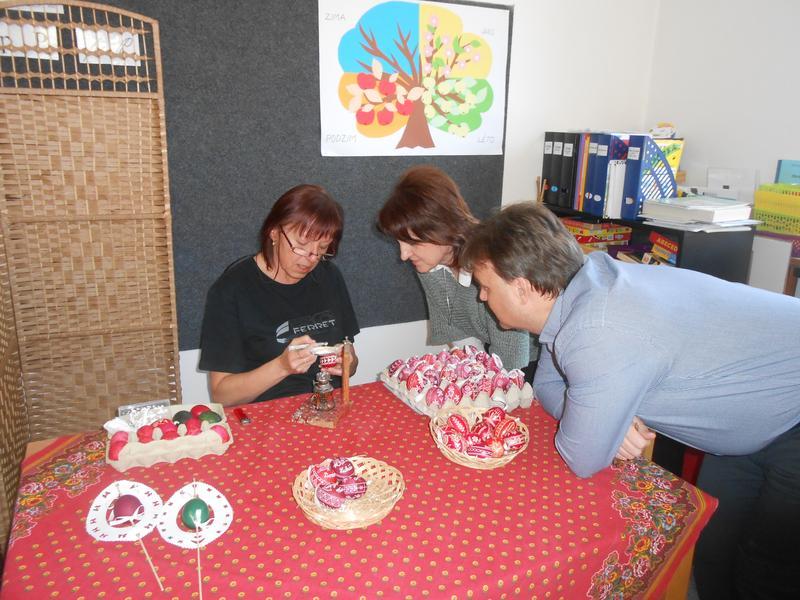 Jak se zdobí opravdové, národopisné kraslice, nám ukázala paní vychovatelka Slobodanka Kolajová, která je malérečkou a výrobcem Tradiční výrobek Slovácka. Všichni jsme jí při malém kouzlení drželi palce a s nadšením se radovali z úspěchu.