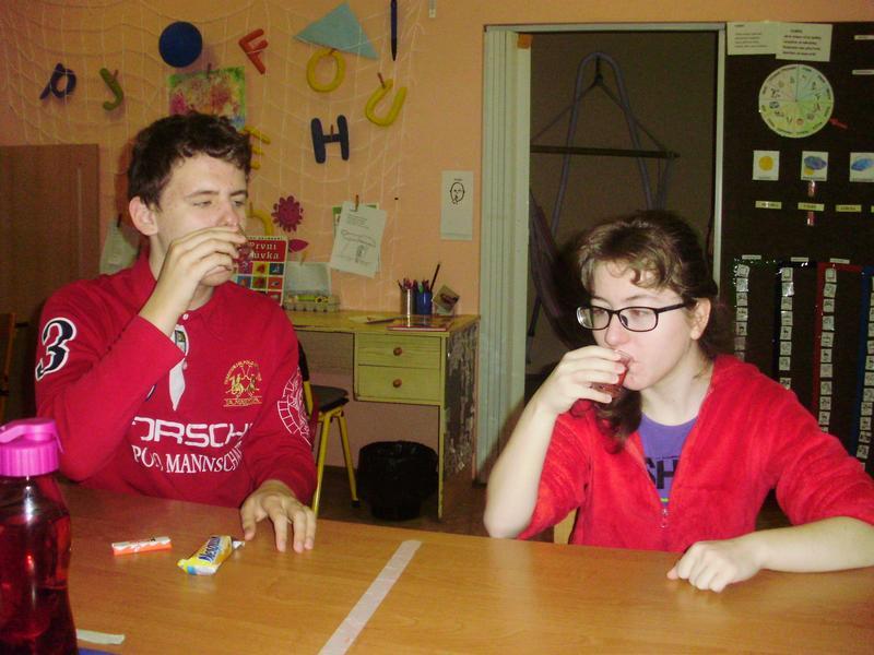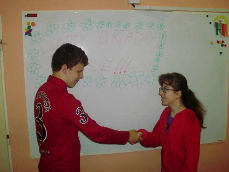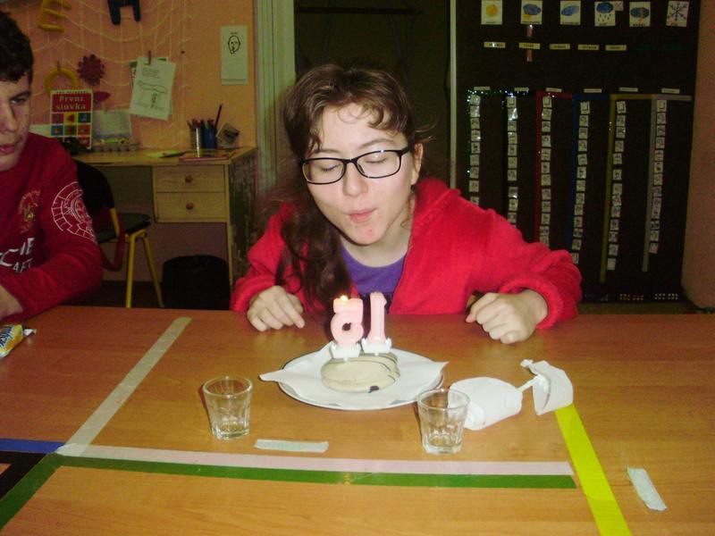 Oslava narozenin při hodině anglického jazyka.