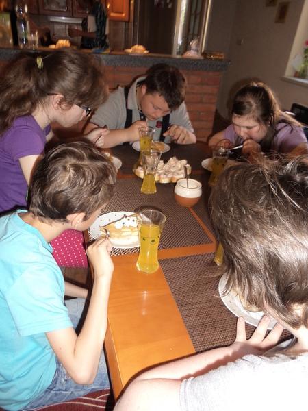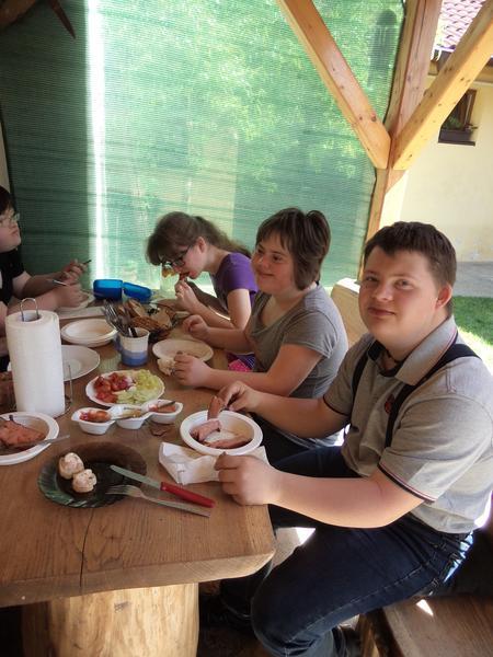 Povídali jsme si, pochutnali jsme si na výborném jablečném dortíku. Také jsme si přečetli pohádku a splnili jsme drobné úkoly související s textem. Na zahradě jsme si zaskákali na trampolíně a konečně přišlo naplánované a očekávané opékání špekáčků! Pochutnali jsme si!
