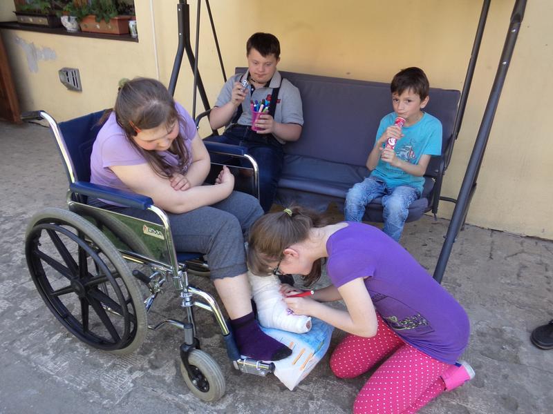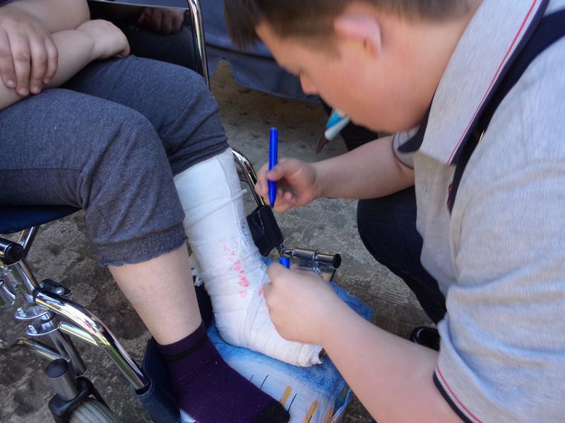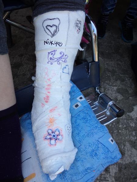 Popřáli jsme Nikolce brzké uzdravení a na sádru jsme jí nakreslili obrázky - "na památku". Mamince děkujeme za milé přijetí a za dobroty!