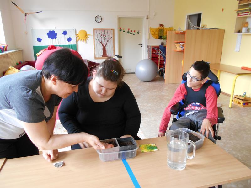 My jsme si vyzkoušeli různá povolání, na chvilku jsme byli kuchaři, lékaři, policisté, průvodčí nebo opraváři. Názorné učení nás tolik bavilo, že jsme si vyzkoušeli povolání zahradníka a přímo ve třídě sadili semínka do květináčů.