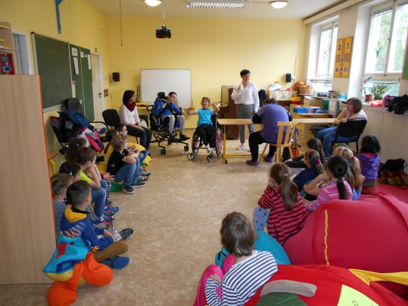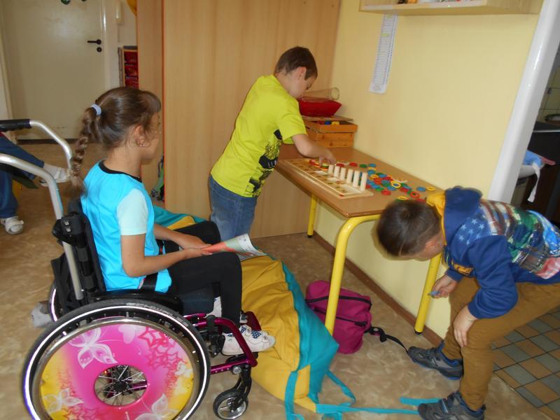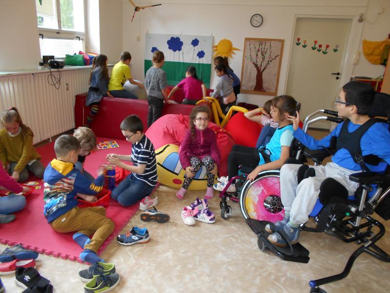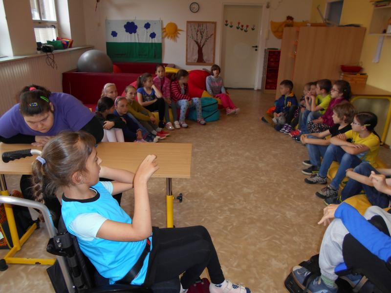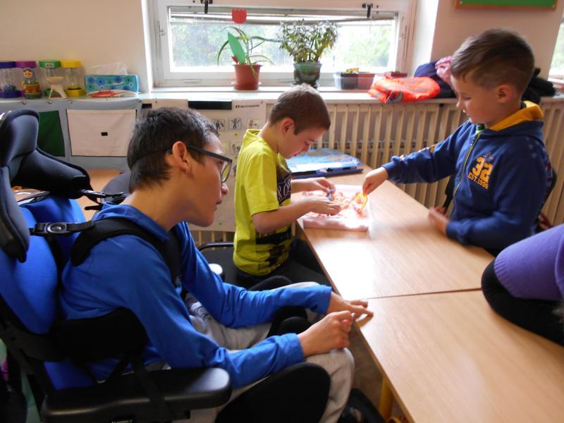 Žáci 1. 2. a 3. třídy ZŠ UNESCO nás přišli navštívit a podívat se na naše vyučování. Prohlédli si a názorně vyzkoušeli naše didaktické pomůcky - tekutý písek, navlékání kroužků, aj.