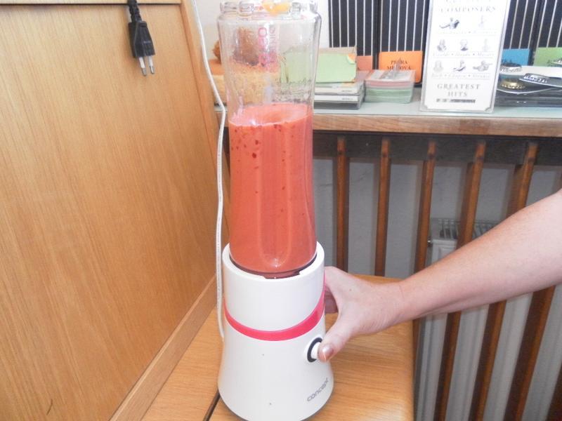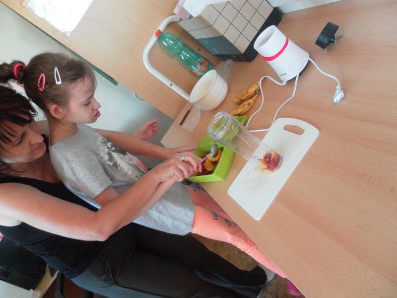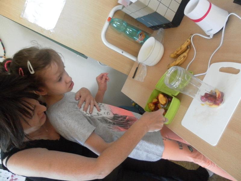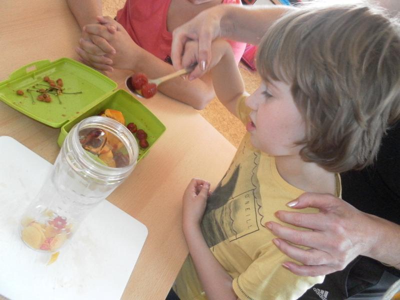 Ovoce našich krajů - jahody a třešně jsme doplnili plody exotickými - banánem a nektarinkou. Smoothie - jak se nová pochoutka jmenuje - chutnalo opravdu všem.