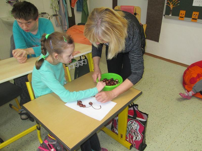 Ve III. třídě zpíváme písničky s podzimní tématikou, čteme na pokračování zajímavou knihu o tom, co se děje v podzimní přírodě, aktuálně v měsíci říjnu. Při pobytu venku a procházkách v okolí školy rovněž přírodu pozorujeme. Nasbírali jsme si šišky, šípky, listy a kaštany, které využíváme zejména při výtvarných činnostech. Průběžně si zdobíme třídu. K podzimu patří pouštění draka, které jsme si vyzkoušeli, i když nám zrovna moc nefoukalo. Někteří žáci pomáhali s hrabáním listí, které nám s potěšením dovolila paní, upravující travnaté plochy areálu nemocnice.