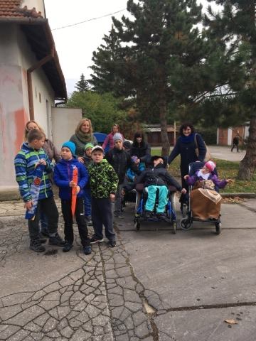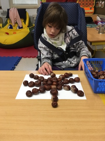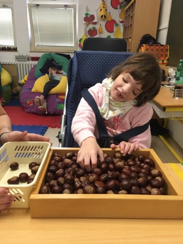 Kromě jiného denně využíváme okolí školy k vycházkám, kde pozorujeme měnící se podzimní přírodu, sbíráme listy, kaštany a šípky, které využíváme dále ve výuce.