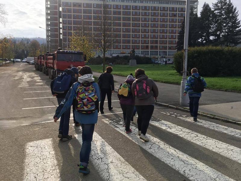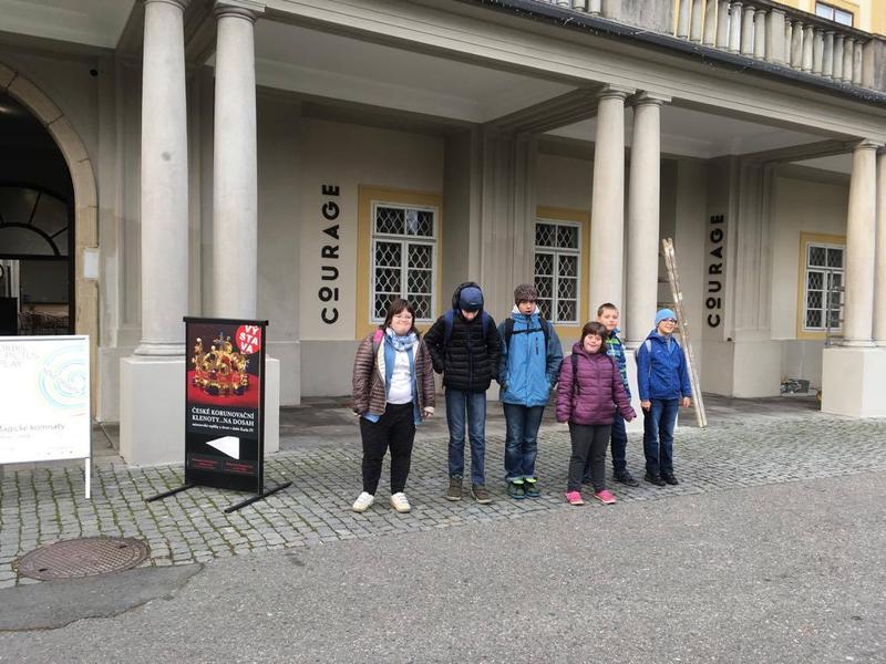 První den podzimních prázdnin jsme se sešli v plné sestavě na autobusovém nádraží v Uherském Hradišti a zamířili do Zlína. Tam jsme podle plánu nejdříve navštívili muzeum ve Zlínském zámku, kde jsme si prohlédli zajímavé obrazy výtvarnice Dagmar Staškové - Sochy v obraze. Poté jsme se přesunuli do budovy č. 14 na interaktivní výstavu Svět kostiček, kde jsme strávili téměř celé dopoledne.
