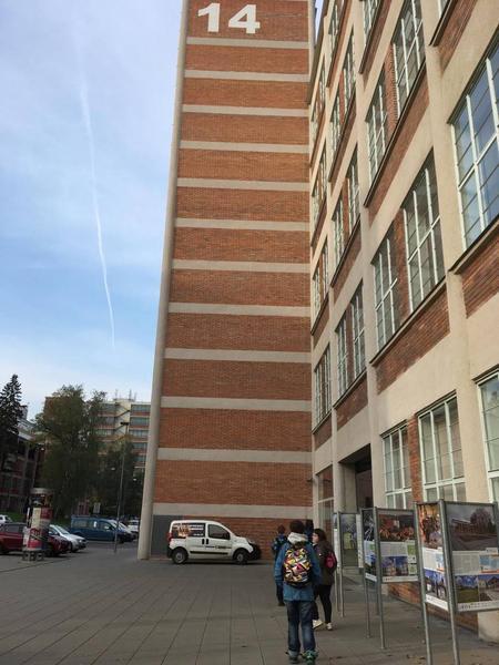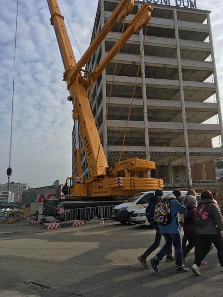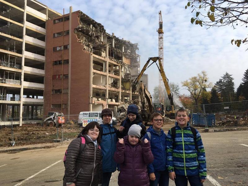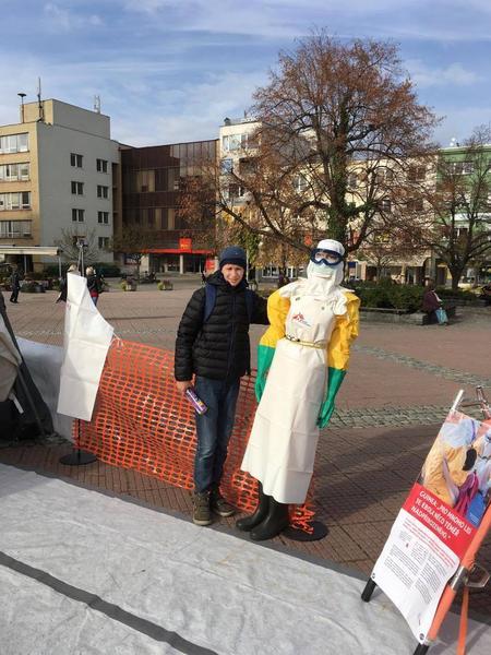 Hledáním vhodné restaurace, kde bychom mohli poobědvat, jsme prošli minimálně půlku města, ale nakonec se podařilo. Cestou jsme viděli jak se bourá stará budova bývalého Prioru, také jsme potkali na náměstí aktivisty informující kolemjdoucí o ebole v Africe (obzvláště Dana zaujal oblek lékařů).