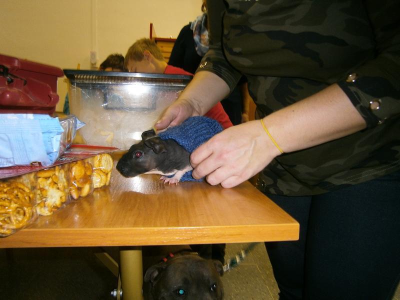 Stafordšírský bulteriér, skinny morče a strakatý Rex nám zpříjemnili dopolední vyučování. Dozvěděli jsme se další novinky o zvířatech a potěšili se jejich přítomností.