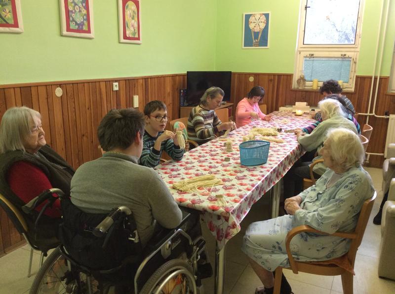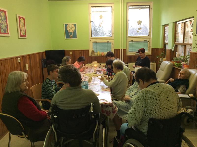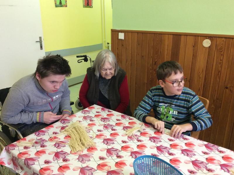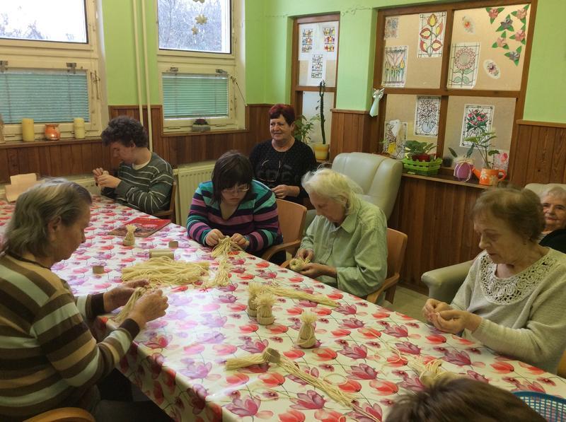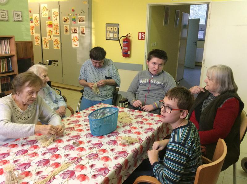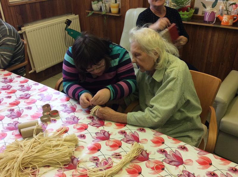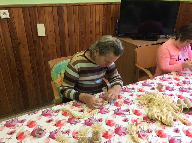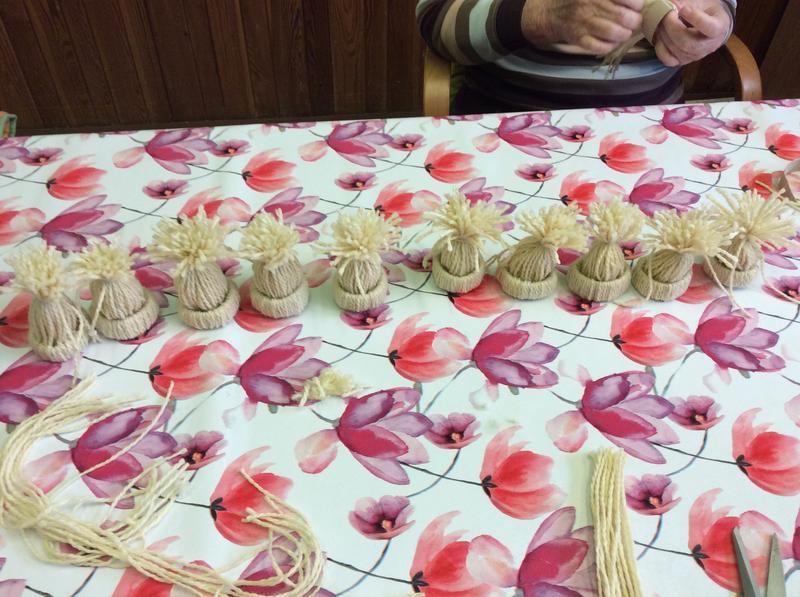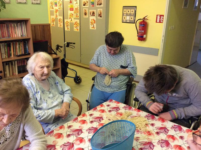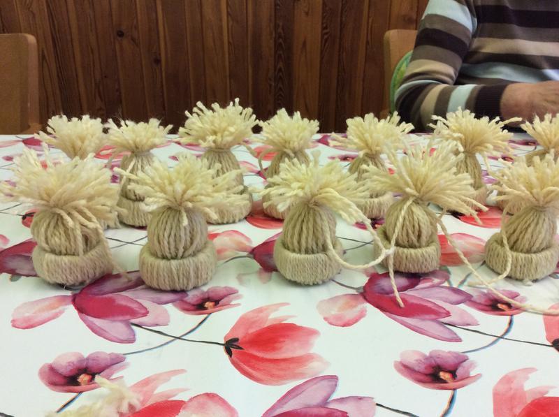 Do tvořivé činnosti se zapojil i jeden nový dědeček, se kterým jsme se minulý týden seznámili a tak jsme se u velkého stolu sešli opět v hojném počtu. Vyráběli jsme malé čepičky z roliček od toaletního papíru a vlny, které nás v zimě sice nezahřejí, ale zato nás hřeje pocit z dobře odvedené práce.