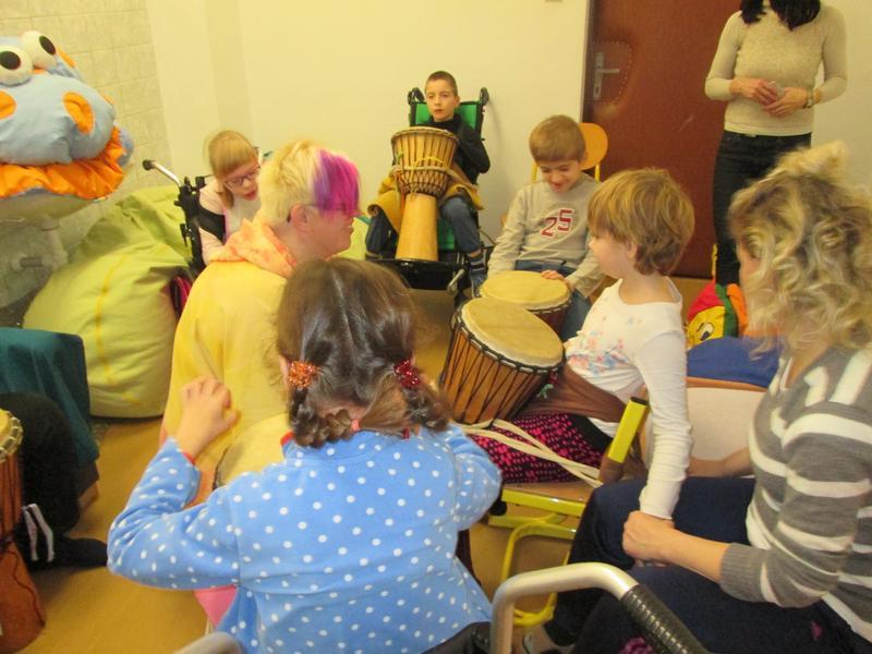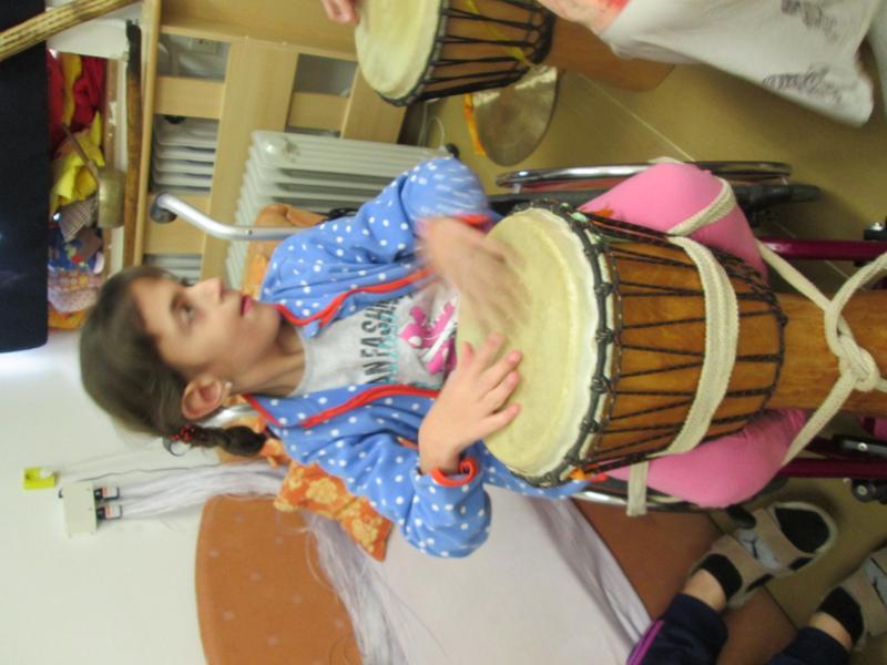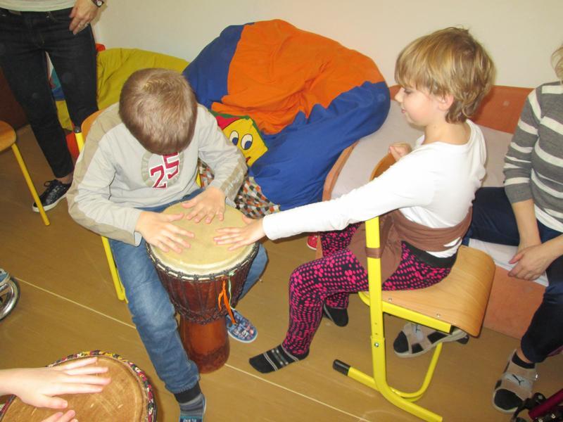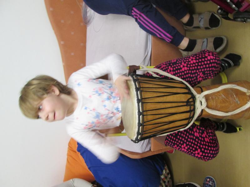 Paní Mirka Veselá nám přivezla bubny, a my jsme si bubnování všichni moc užívali. Nebylo to vůbec snadné, nejprve se nám pletly ruce i rytmus, ale nakonec jsme se sehráli a skvěle nám to ladilo.