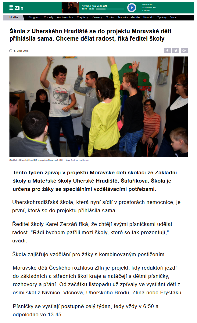 Poslechněte si žáky naší školy ve vysílání Českého rozhlasu Zlín.
