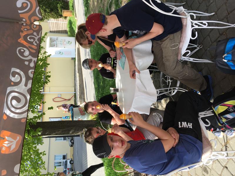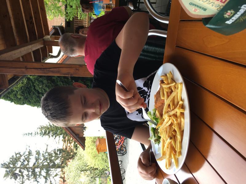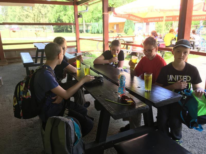 Potom jsme poobědvali na zahrádce restaurace hotelu Mlýn. Po obědě, místo siesty, se kluci vyřádili na místním hřišti. Ještě jsme stihli zmrzlinu a už nás čekal návrat autobusem domů.