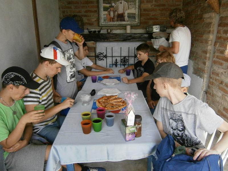 Viktorův tatínek od rána pekl výbornou pizzu a každý si mohl vybrat podle chuti: špenátová, s tuňákem, s ananasem, sýrová. Viktor s rodiči připravil i velké překvapení pro Dana, který má zrovna dnes narozeniny. Potom nám ukázal všechna jeho zvířata i vlastní pokojíček. Využili jsme trampolínu a na zahradě si zahráli fotbal.