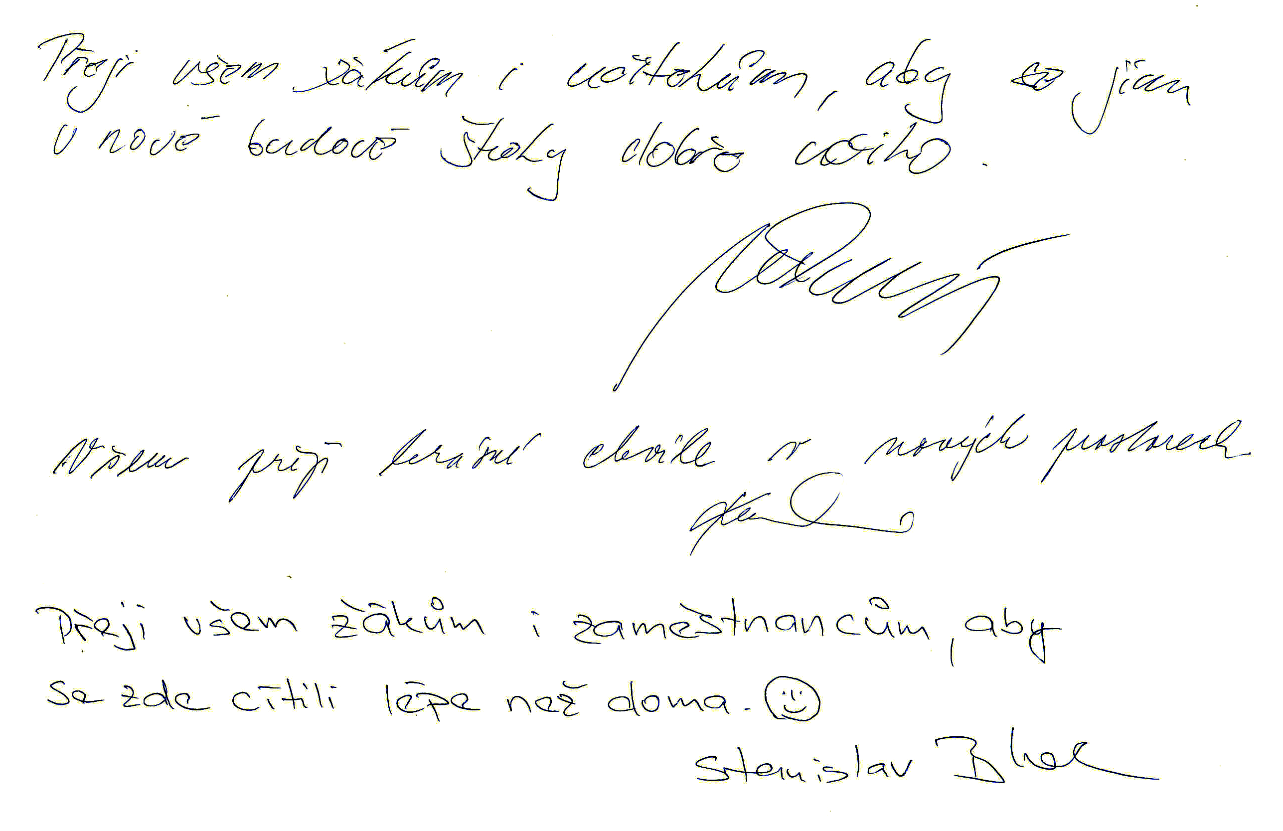 Slavnostního otevření se kromě našich žáků a jejich rodičů zúčastnil starosta města Uherské Hradiště a poslanec Poslanecké sněmovny Parlamentu ČR pan ing. Stanislav Blaha, oba místostarostové města, pánové PhDr. Ivo Frolec a ing. Zdeněk Procházka, za zřizovatele školy paní Mgr. Jana Kapalková z Krajského úřadu Zlínského kraje a mnoho dalších milých hostů, kteří se svým rozhodnutím či prací na rekonstrukci školy podíleli a také zástupci spolupracujících organizací a sociálních partnerů školy.