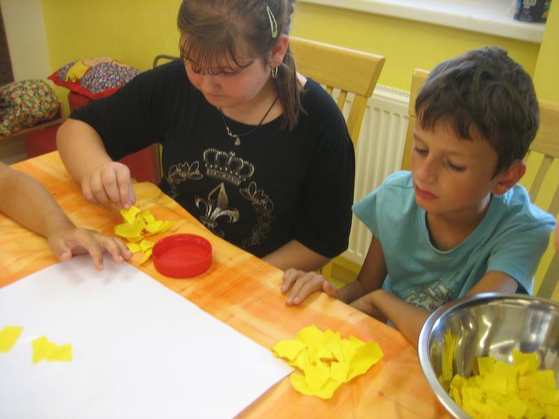 V krásném prostředí naší "sluníčkové" třídy jsme zahájili práci - povídali jsme si, byli jsme na vycházce, opékali špekáčky...