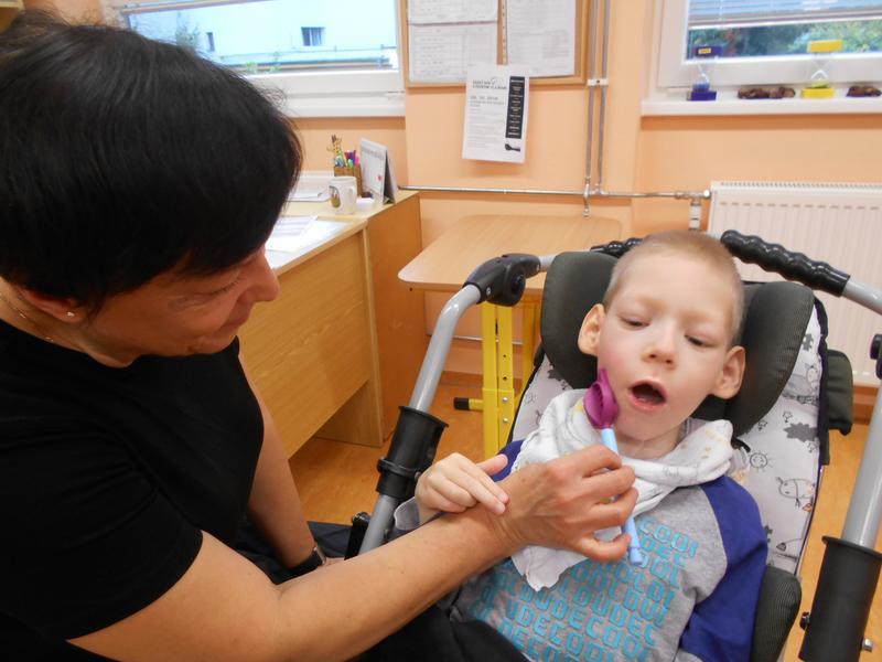 Cvičení v tělocvičně jsme vyměnili za přírodu a v rámci Řečové výchovy provádíme orofaciální stimulaci.