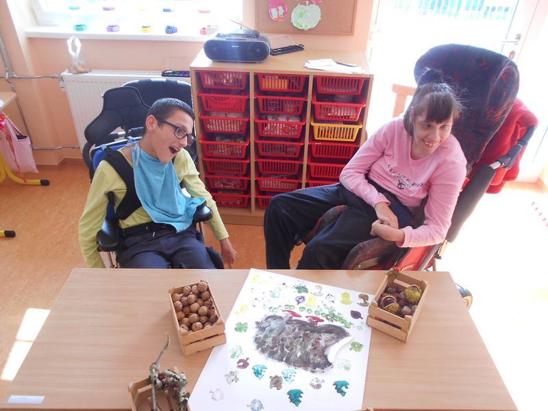 Rádi jsme se opět setkali s tetou Mirkou při hodinách muzikoterapie. Inspirováni hudbou jsme si sami vyzkoušeli hru na xylofón. Někteří žáci načerpali energii ze stromu platanu, ostatní v rámci Rozumové výchovy vypracovali pracovní listy stromů a listí.