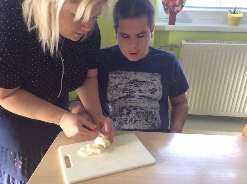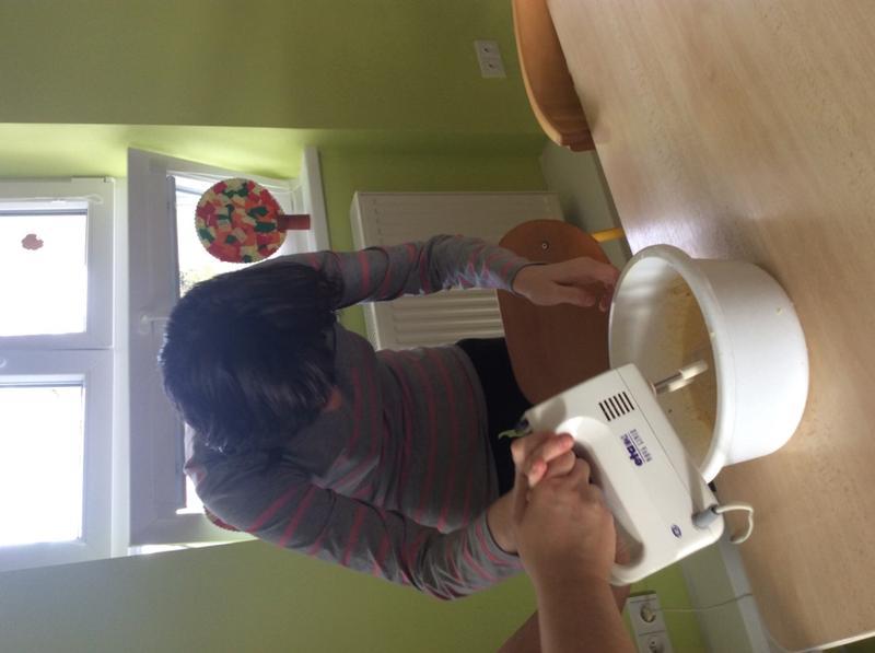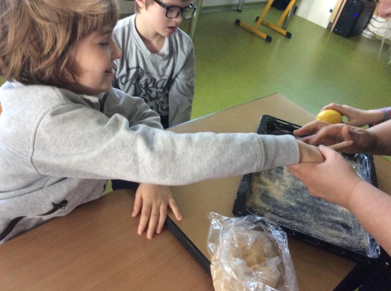 oláč moc pěkně voněl, potom jsme ho s napětím překlopili jako bábovku. Podařilo se!