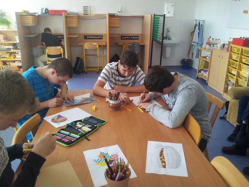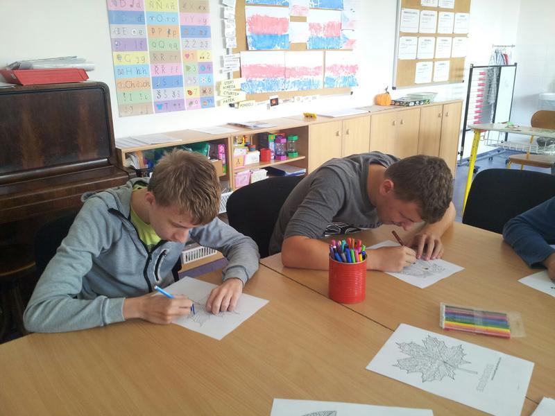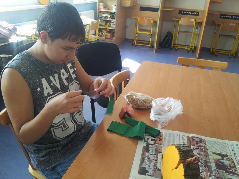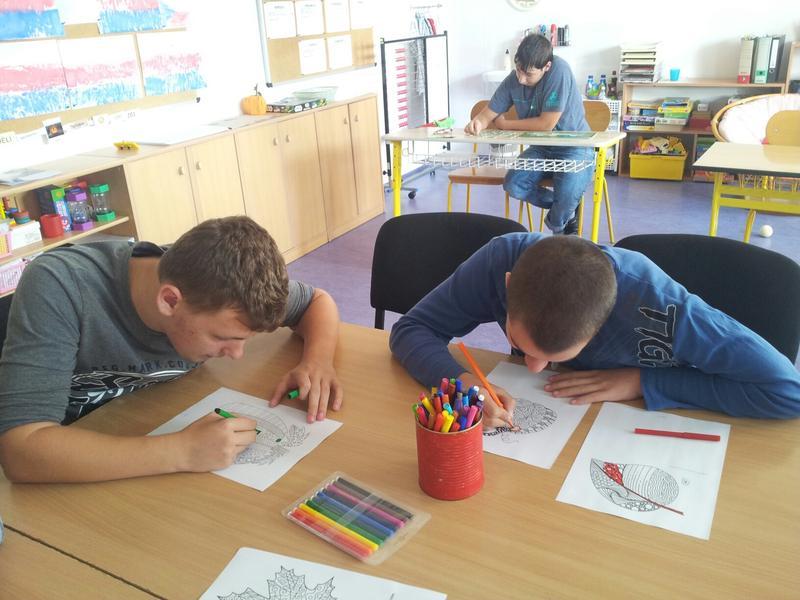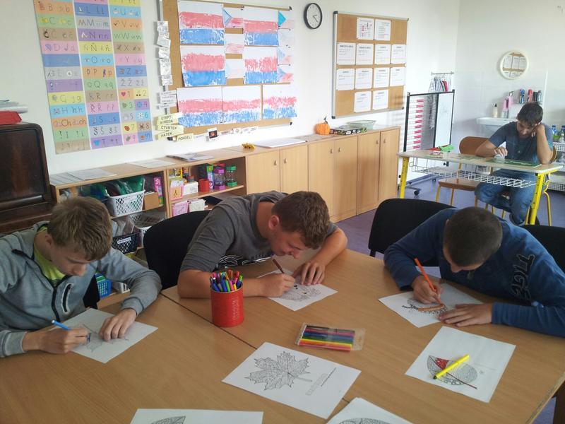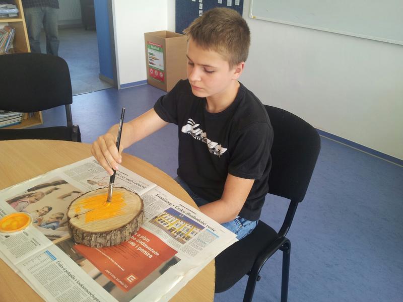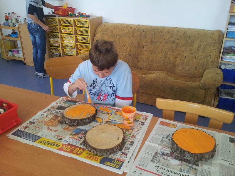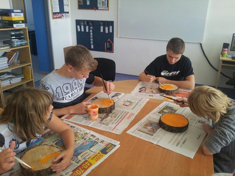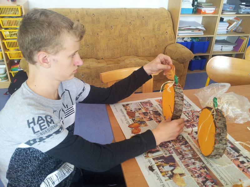 V měsíci říjnu jsme se ve volných chvílích opět snažili něco vytvořit. Tentokrát to byla „dýně“ z dřevěných plátů, které jsme natírali oranžovou barvou, stopku jsme vyrobili z krepového papíru a celkově dýni dozdobili krásně podzimně zbarvenými listy. Různé tvary listů a dýní jsme také vybarvovali, stříhali a zkrášlili jimi nástěnku školní družiny ve vestibulu školy.